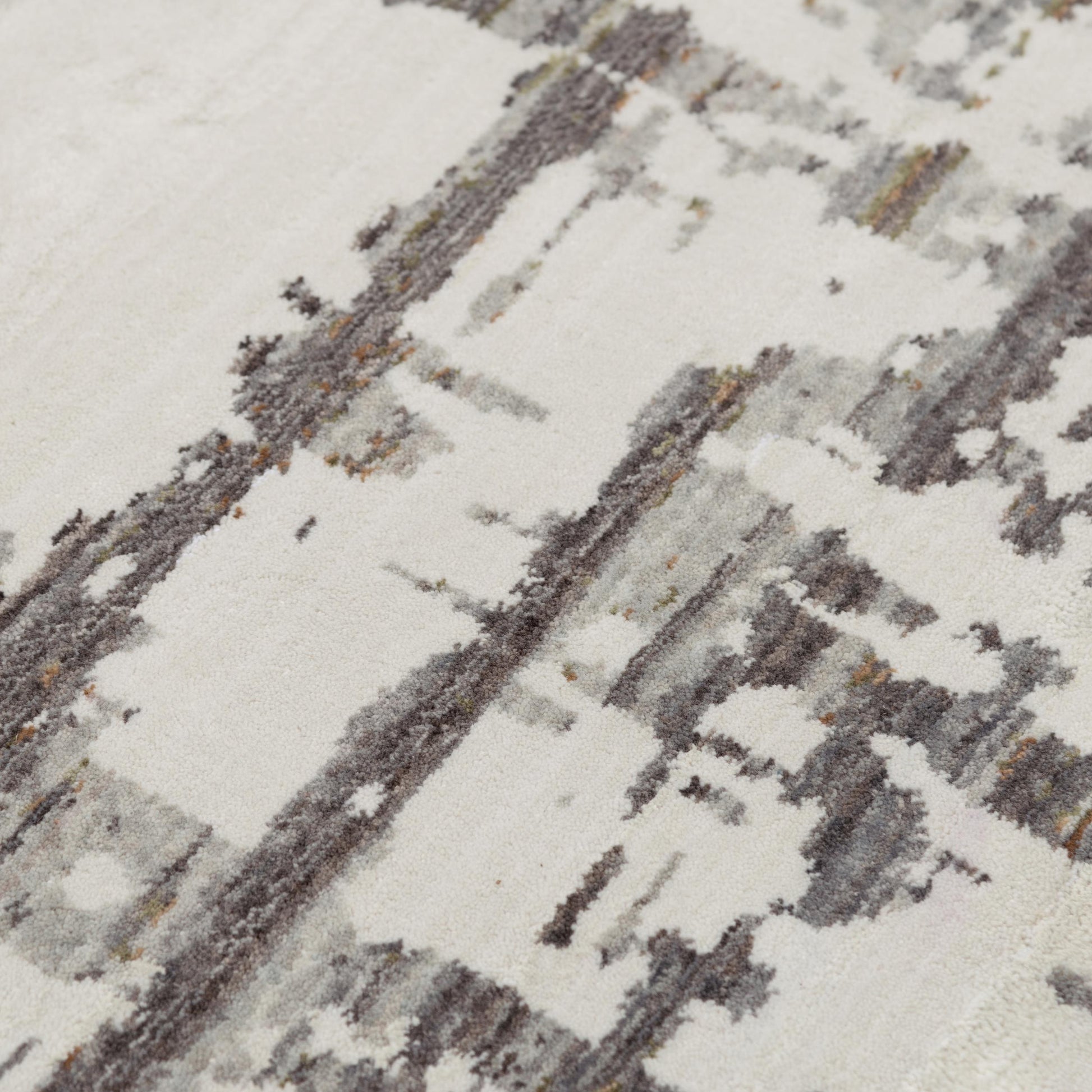 This Rizzy Home Ankara Collection rug in abstract natural hues of ivory, earth and slate gray, makes an undeniable statement of ultramodern decor in any room. Its 100% recycled polyester hybrid construction allows for easy care and durability. The contemporary transitional design can anchor a variety of interior decor styles. Hand sheared and hand washed for added softness, this rug is functional while also timelessly sophisticated.