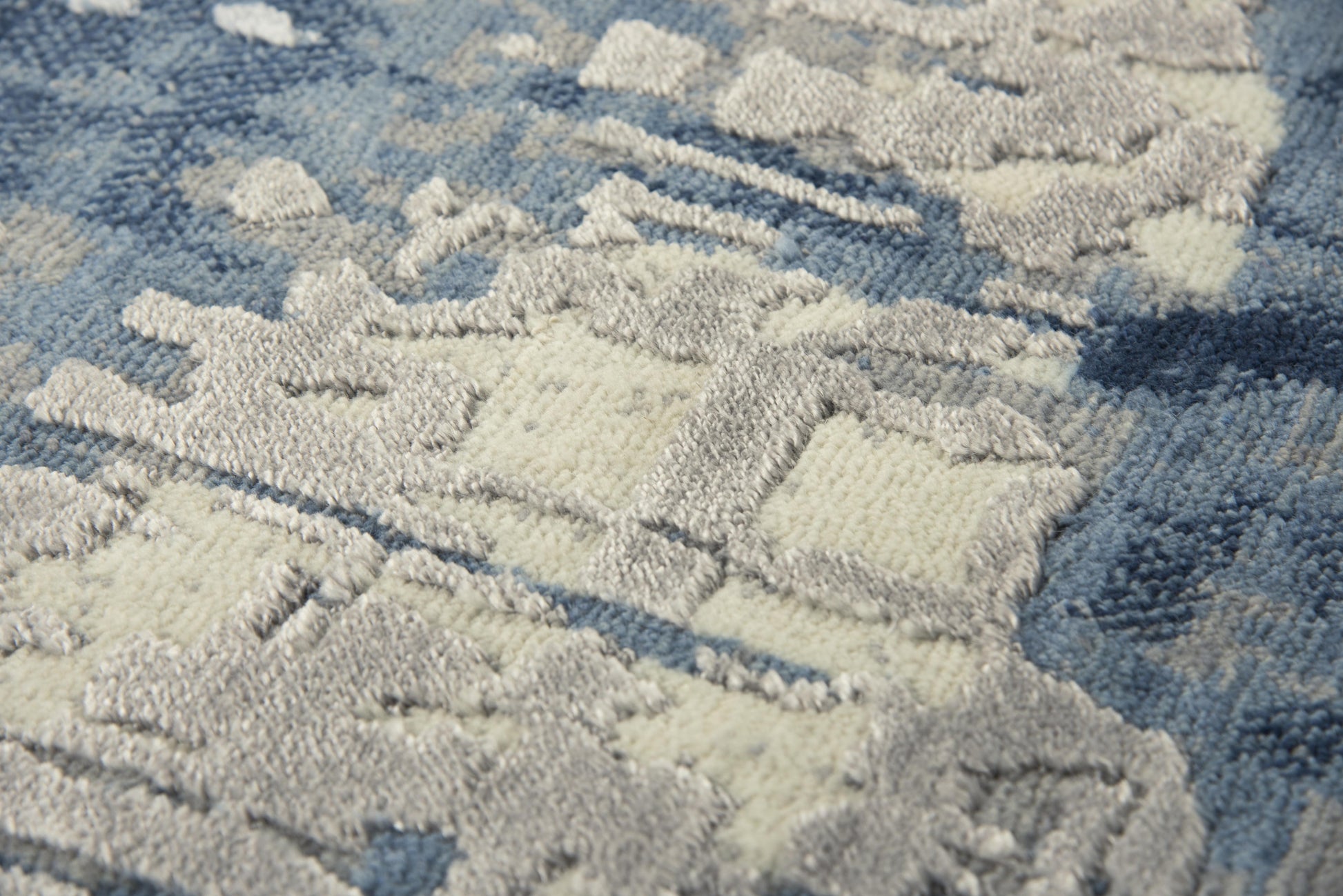 Astonishing steel blue New Zealand wool blends with subtle grey and neutral ivory to make this Rizzy Home Artistry Rug an ultimate finishing touch to your modern or contemporary home or office décor. Hand-carved pile adds dimension while hand-washing of the fibers adds softness in all the right places. Plus, the 20-percent Tencel fiber adds a lovely sheen. The edges are hand-surged offering a distinct border on the rug.