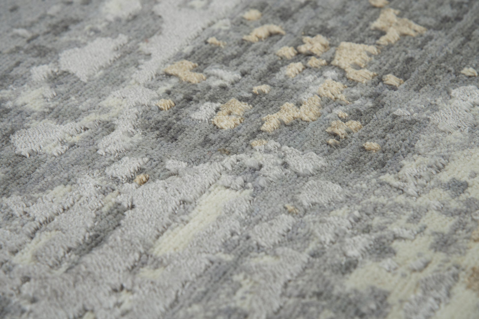 A shimmer of gold will attract the eye to this stunning Artistry Neutral Grey, Ivory, and Gold Wool Blend Rug by Rizzy Home. Accented with 20-percent Tencel fiber to provide a slight sheen, this soft New Zealand wool-blend rug will compliment your modern or contemporary style décor -- the consummate touch in decorating. The Abstract pattern moves from side to side, while the hand-carved fibers add dimension and interest.