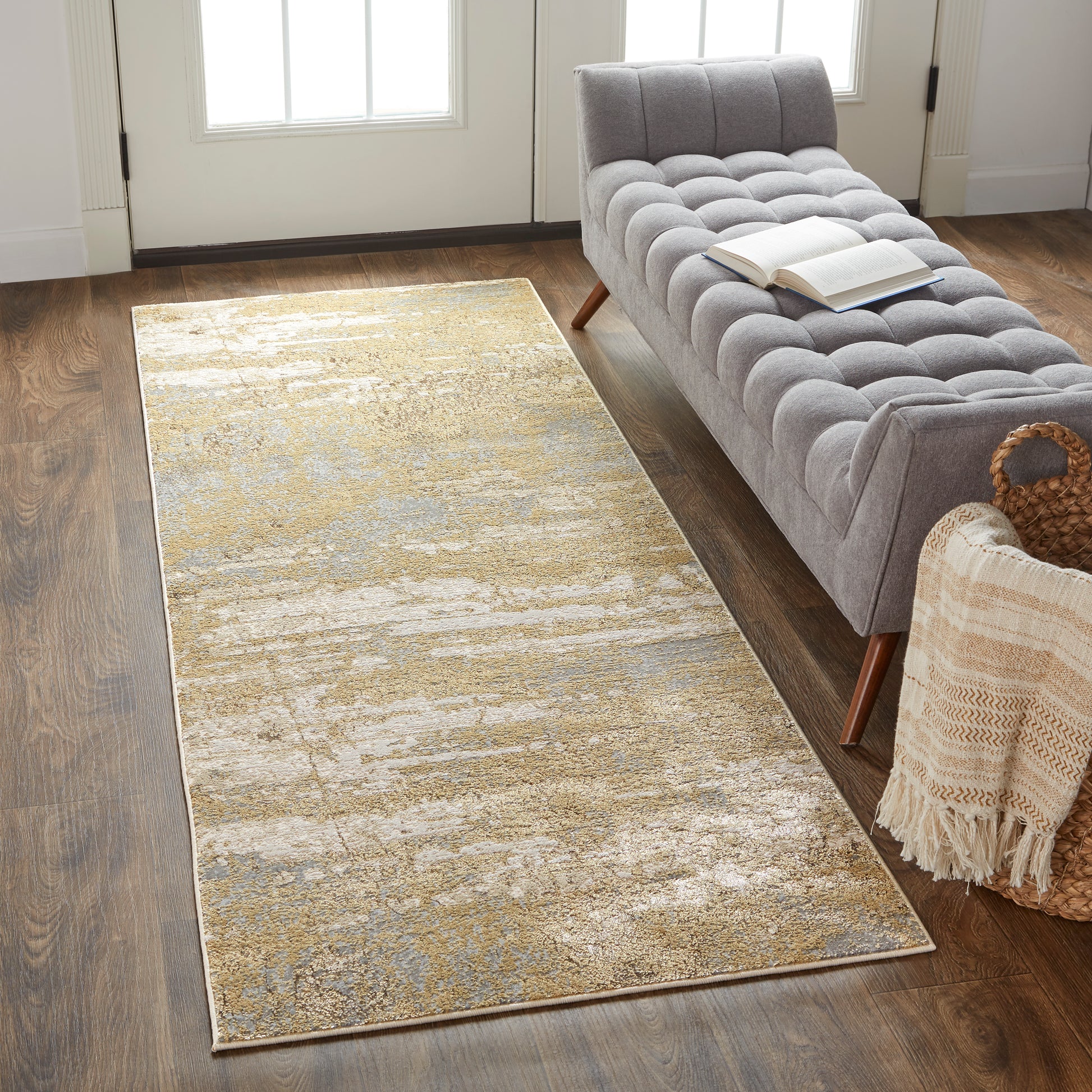 The Feizy Aura collection is made in in Turkey. Power loomed in an ultra-durable polypropylene and polyester blend, the area rug is highly durable but also in an on-trend design in golds and champagne. Featuring gold and silver contemporary designs, the pattern and colors of this rug create impressive and sophisticated spaces.