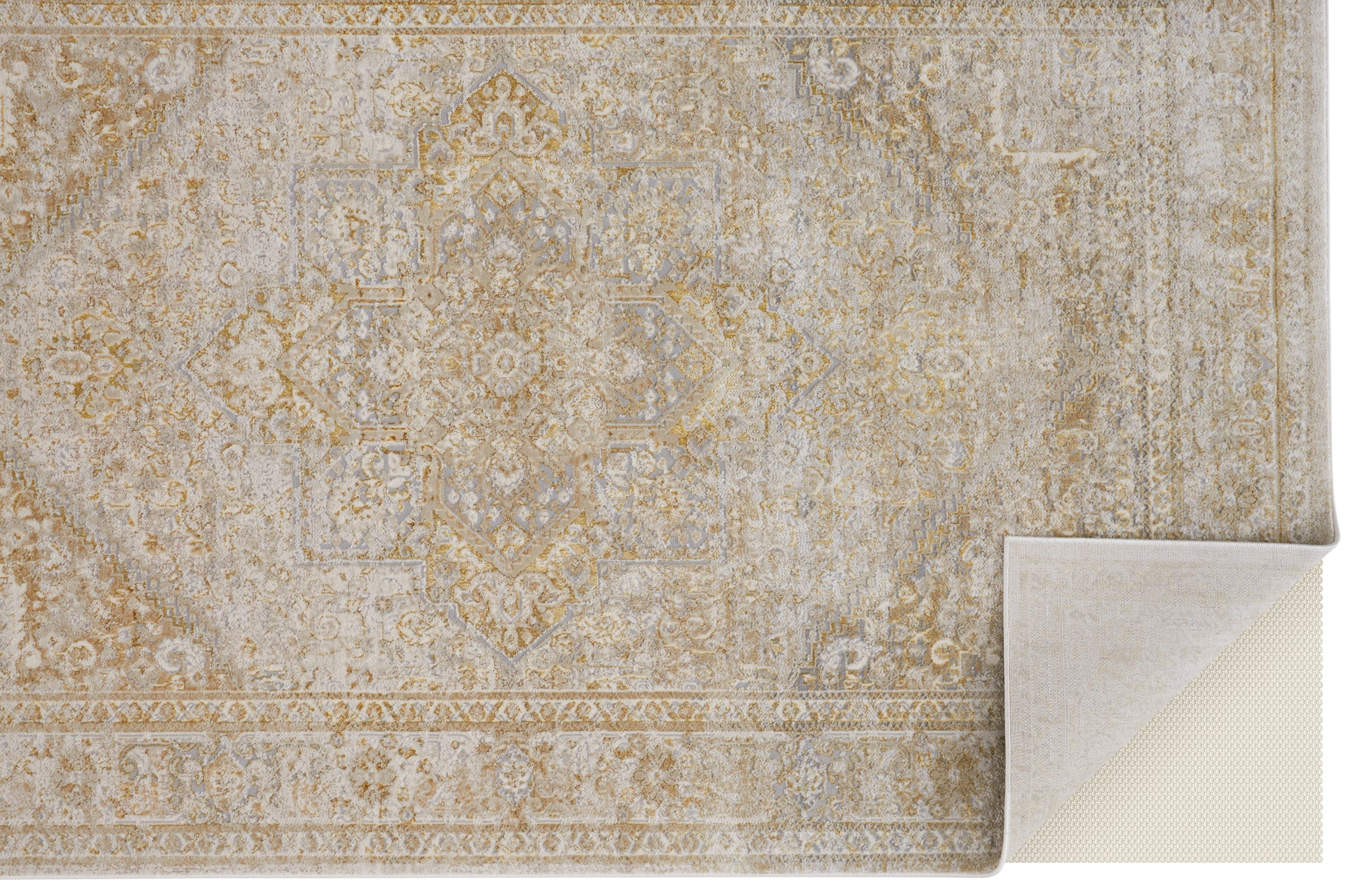 The Feizy Aura collection is made in in Turkey. Power loomed in an ultra-durable polypropylene and polyester blend, the area rug is highly durable but also in an on-trend design in golds and champagne. Featuring gold and silver contemporary designs, the pattern and colors of this rug create impressive and sophisticated spaces.