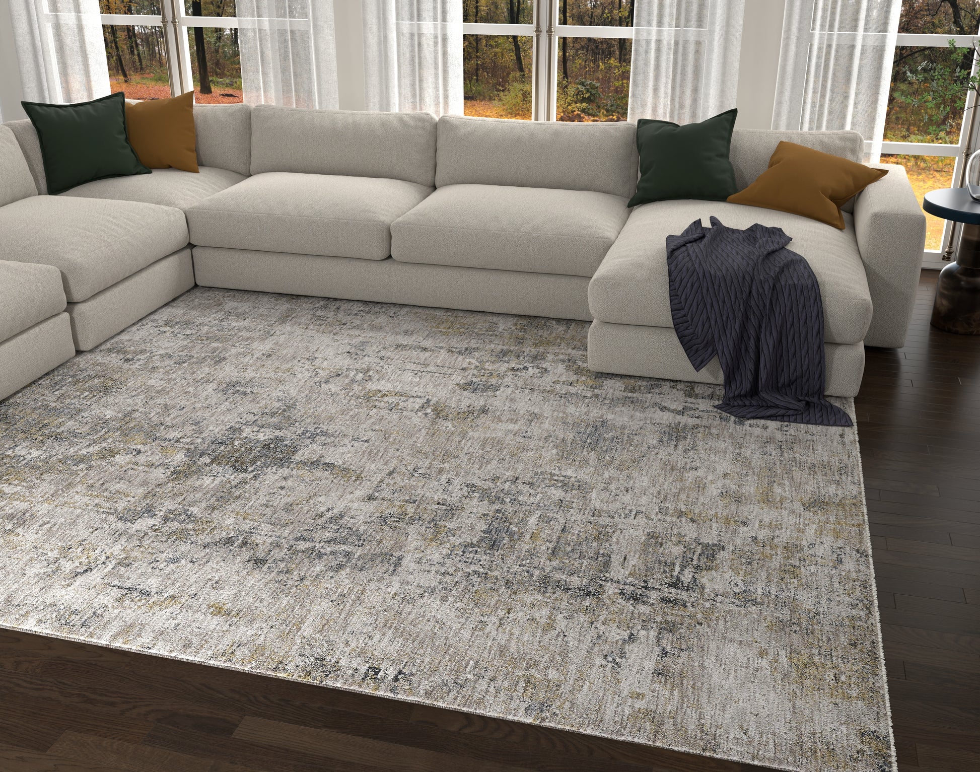 Avani 8406 Ivory/Blue Avery Machine Woven Performance Area Rug - KAS