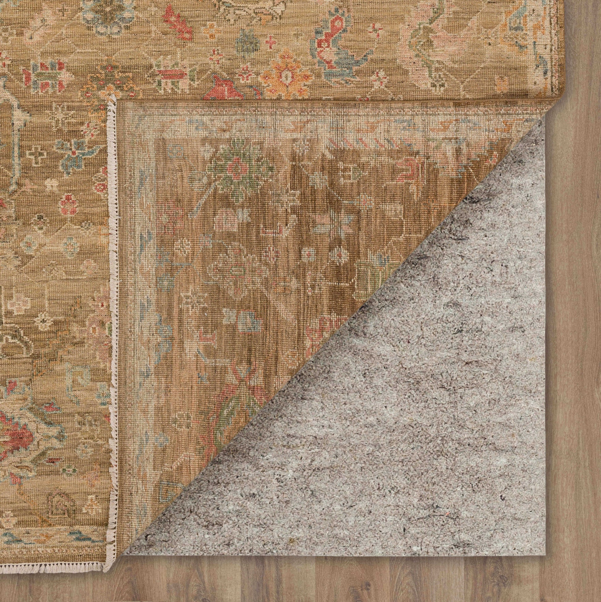 Karastan's Sundar Collection features designs that are hand-knotted from a luxurious blend of wool and rayon. This area rug showcases a warm, golden ground adorned with intricate, time-softened motifs. The delicate pops of coral, teal, and ivory add a lively yet balanced touch, giving the rug a vintage-inspired charm with a modern sensibility. Rayon threads lend a subtle luster, enhancing the depth and texture of the traditional design. Naturally durable and luxuriously soft underfoot, it's a perfect foundation for both classic and contemporary interiors. This rug brings warmth, artistry, and handcrafted elegance to any room.