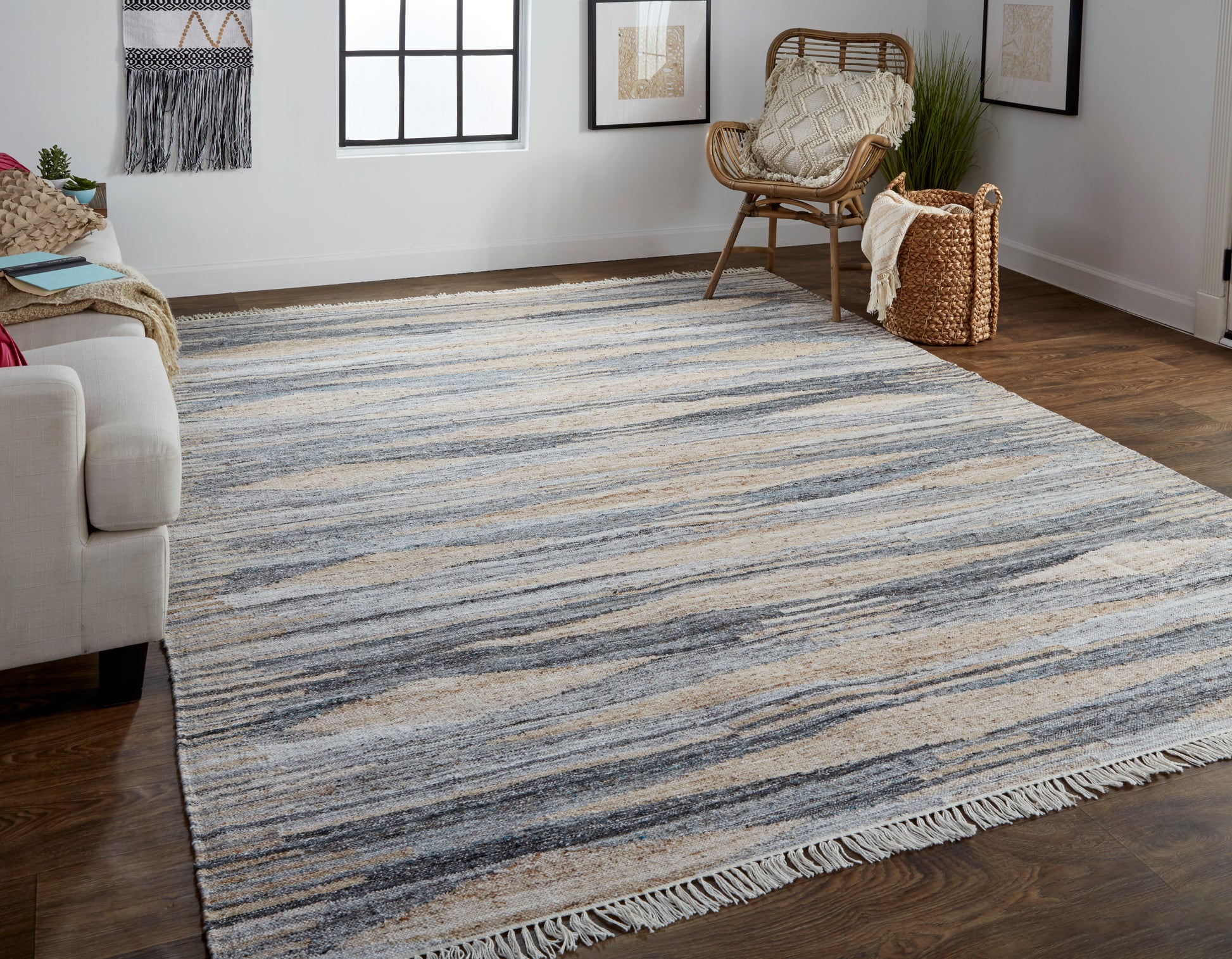Inky gray and comforting beige tones create a versatile backdrop for sophisticated geometric motifs in the Beckett Collection. Handwoven of sustainable, 100% PET fibers, this collection is made from recycled water bottles for fashionable styles that are eco-friendly, stain-resistant and durable!