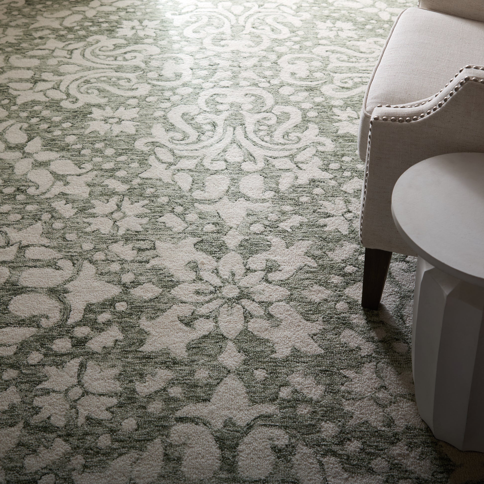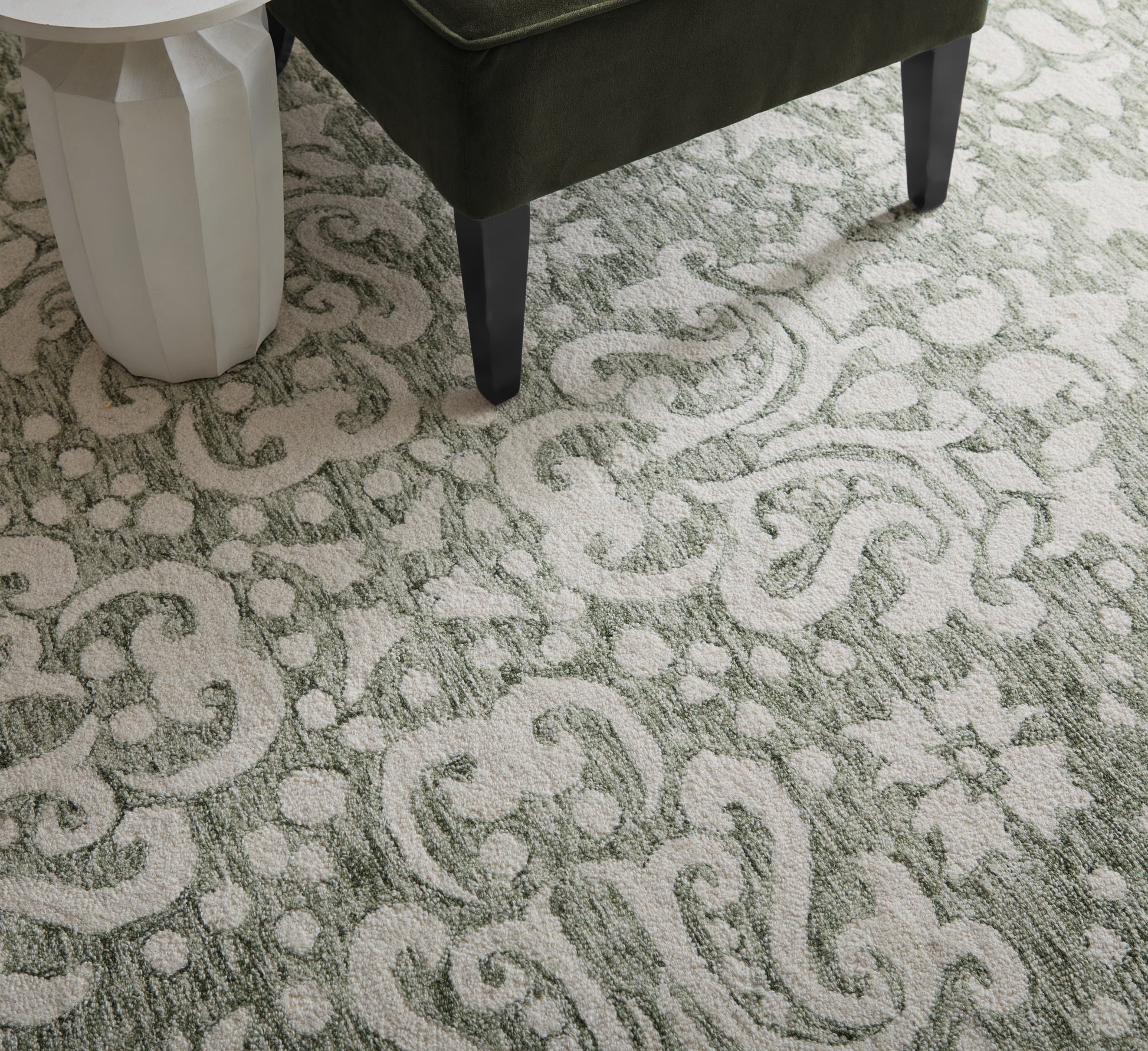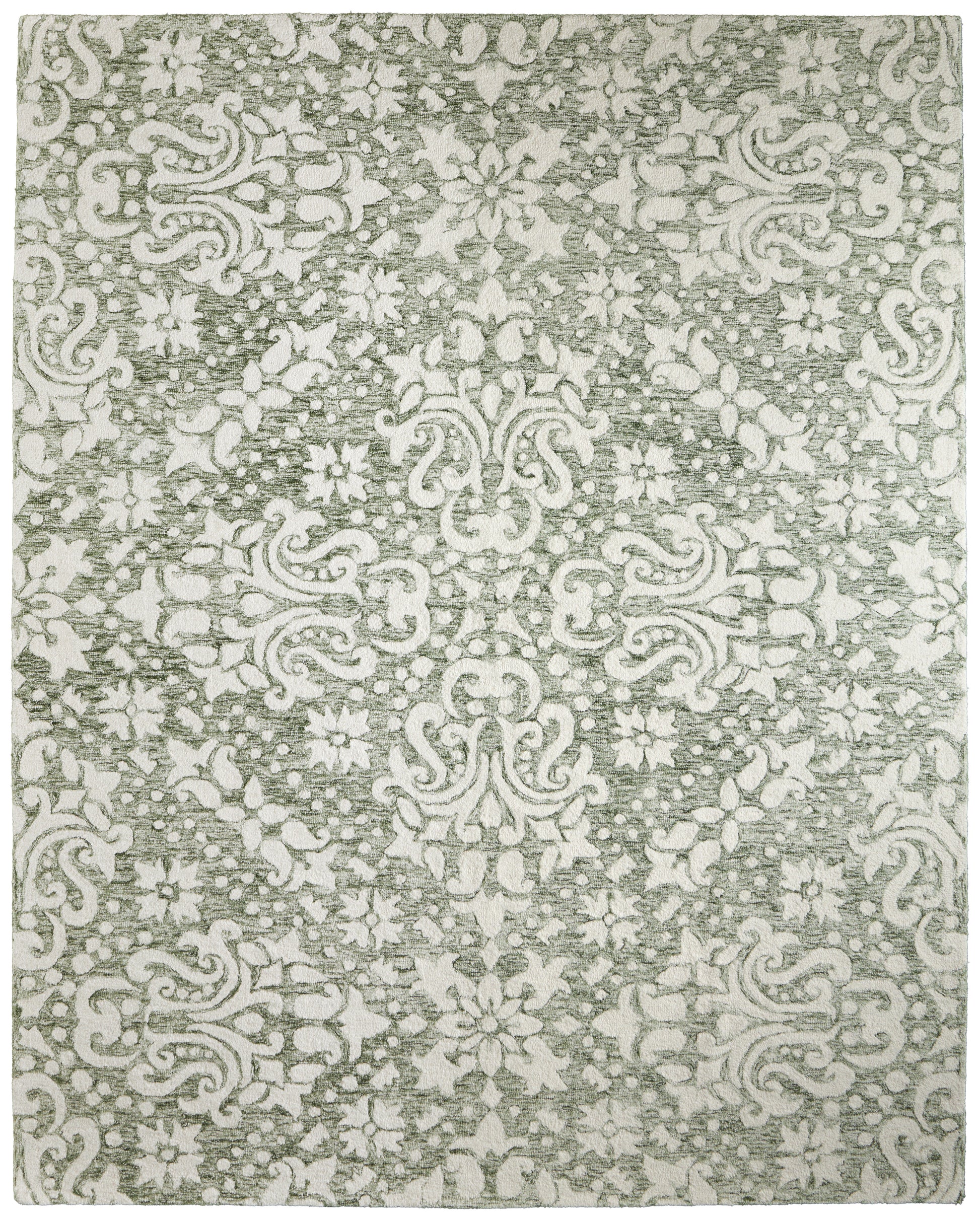 Elegant Design: Featuring an intricate damask pattern in soft sage green and ivory, this traditional rug enhances any home decor in living rooms or bedrooms.