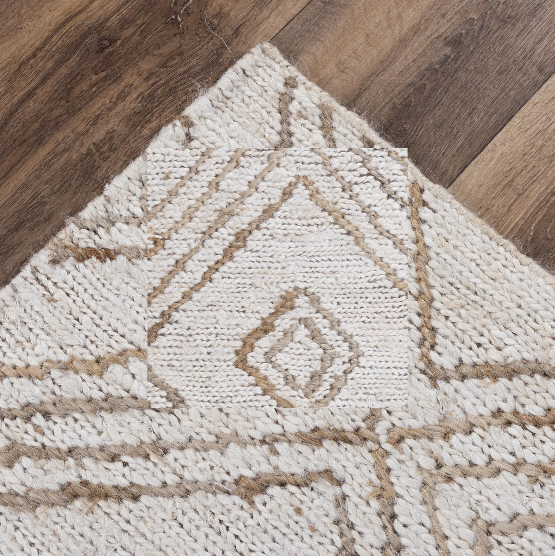 Bring an earthy organic Bohemian vibe to your décor with the Rizzy Home Bengal Beige Dhurrie Rug. Crafted of natural jute by artisans using centuries-old techniques of hand-weaving, the chunky hand-woven design and neutral beige color make this rug the all-natural choice for casual style in your home décor. Hand-surged edges are done for a smooth, finished look.