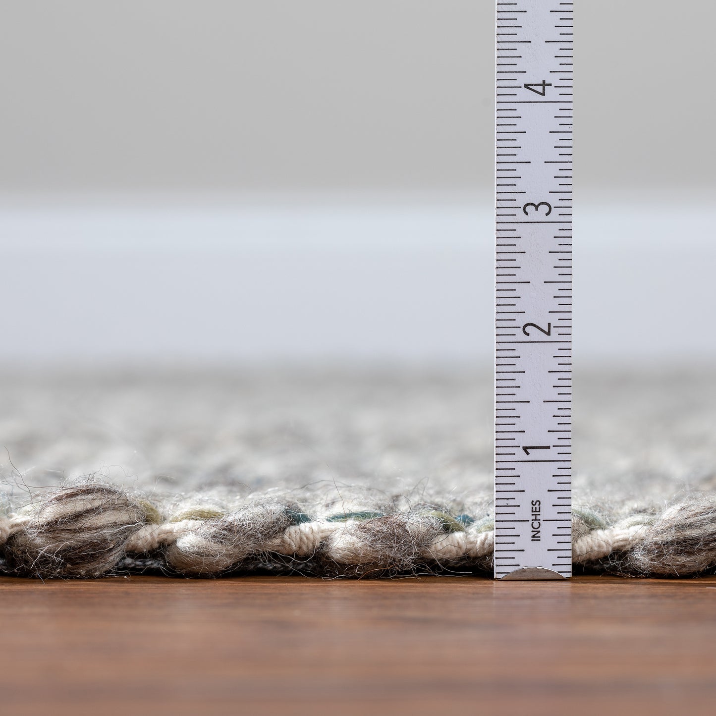 Bondi is a chunky "cobblestone" wool rug with undyed, tonal wool foundation with vertical, space dyed, accent yarns.