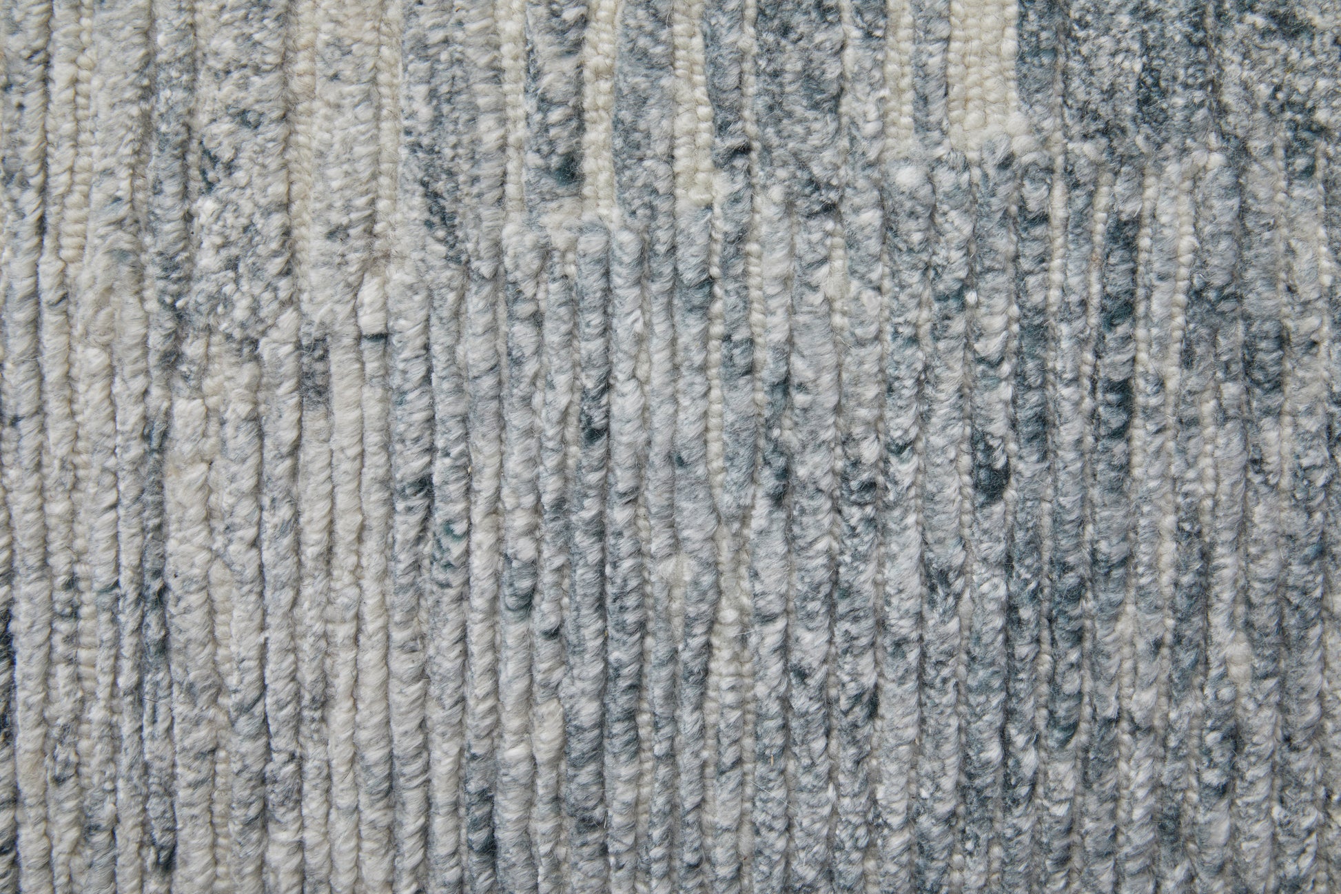 The Feizy Brighton Collection is hand knotted in India of wool and viscose. The subtle use of viscose makes this rug feel silky-smooth and has a slight sheen to it. In shades of gray, ivory, and blue, the design is contemporary and brings a relaxing feel to any room. This handmade area rug is ideal for your living room or office.
