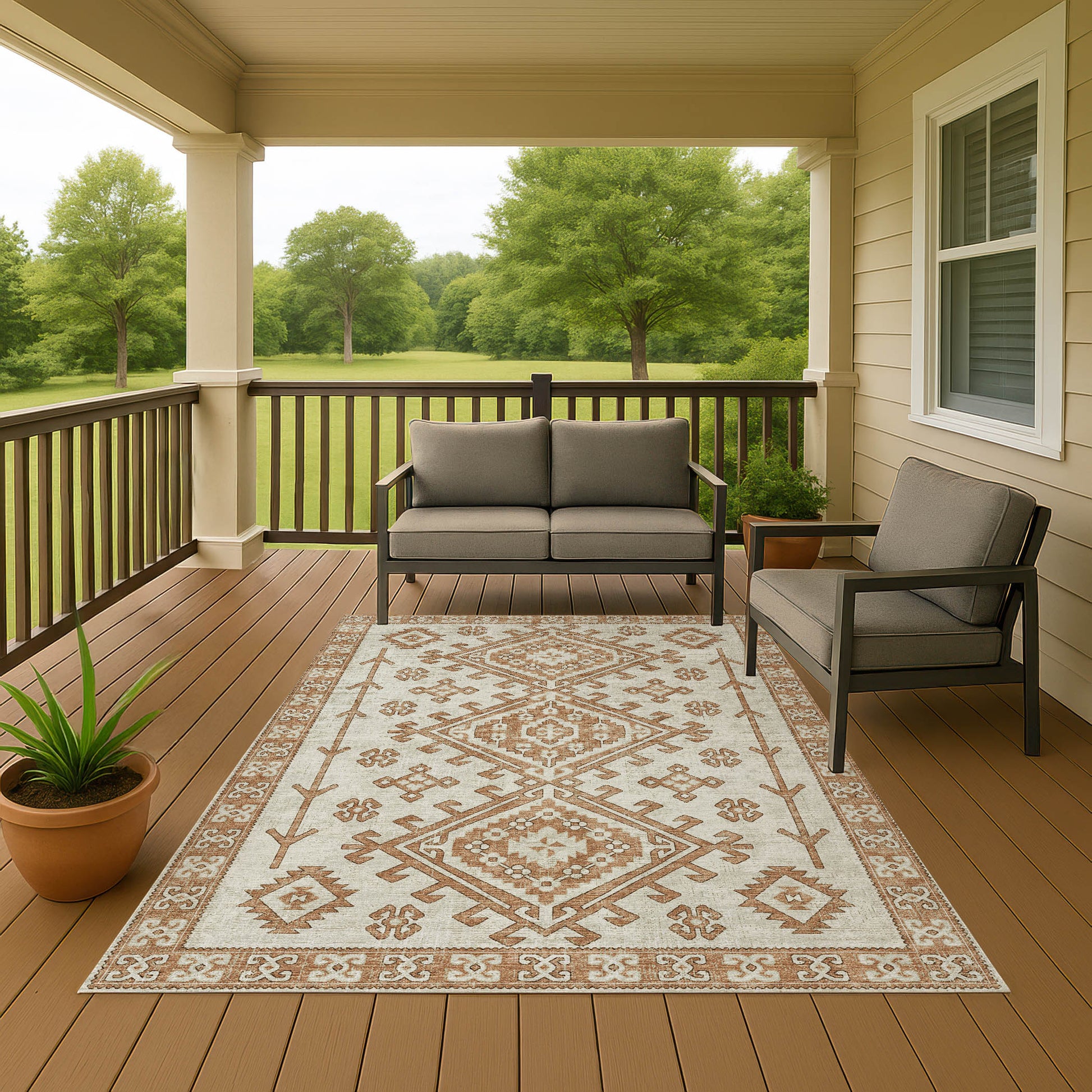 UV stabilized for indoor or outdoor use. All rugs exposed to long periods of intense and direct sunlight can experience loss of color over time. Our rugs perform best in covered outdoor areas and uncovered areas with lower hours of direct sunlight.