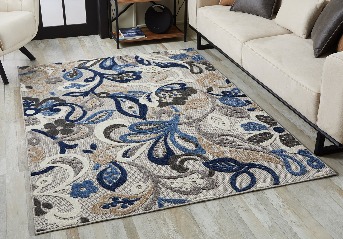 Calla 6922 Grey/Blue Leila Machine Woven Performance Area Rug - KAS