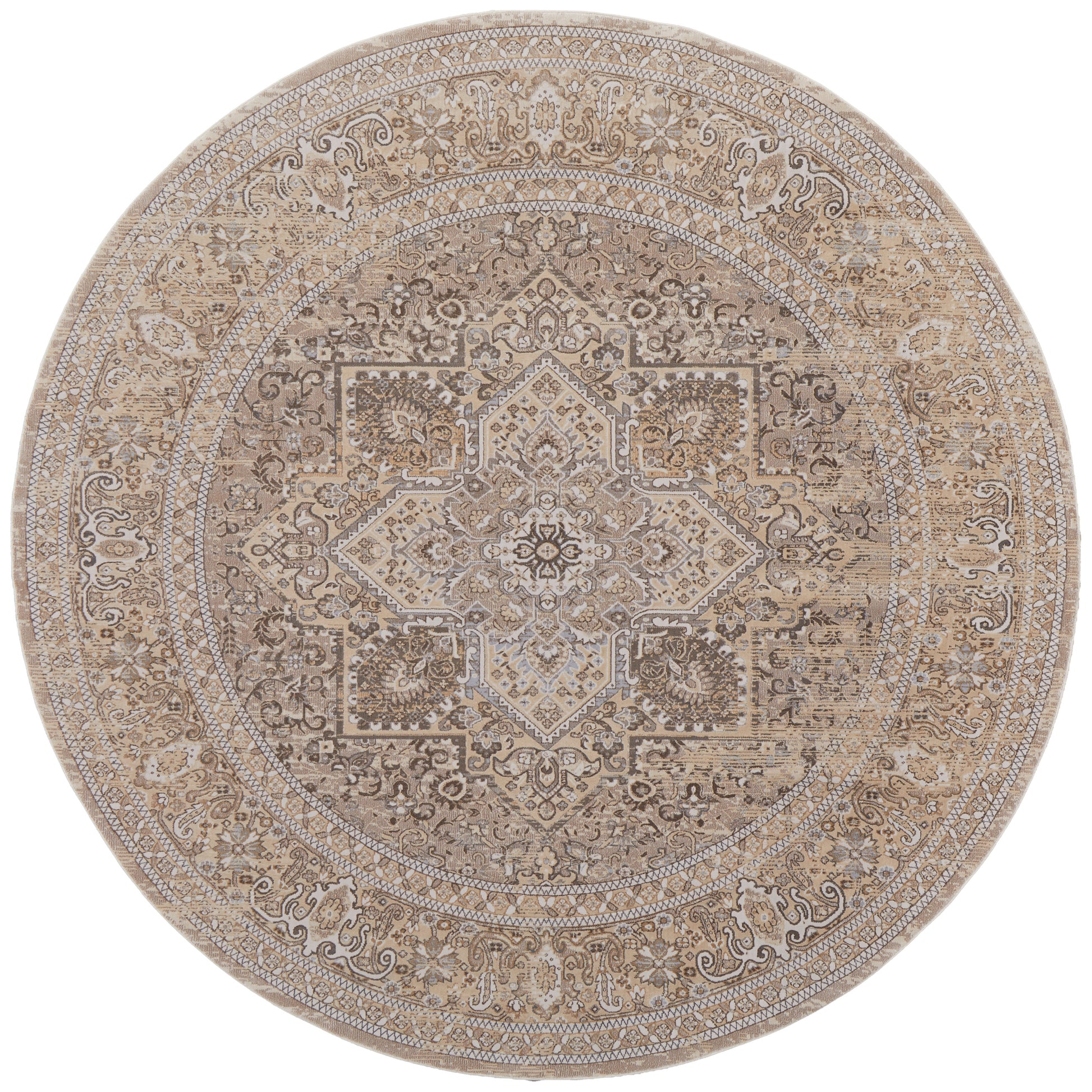 Celene Traditional/Vintage/Casual Brown/Ivory/Tan Round Rug Feizy Rugs Small Parcel,Feizy Rugs,Celene,Brown/Ivory/Tan,7'9" x 7'9" Round,Round Rug,Viscose/Polyester,Traditional/Vintage/Casual,Turkey