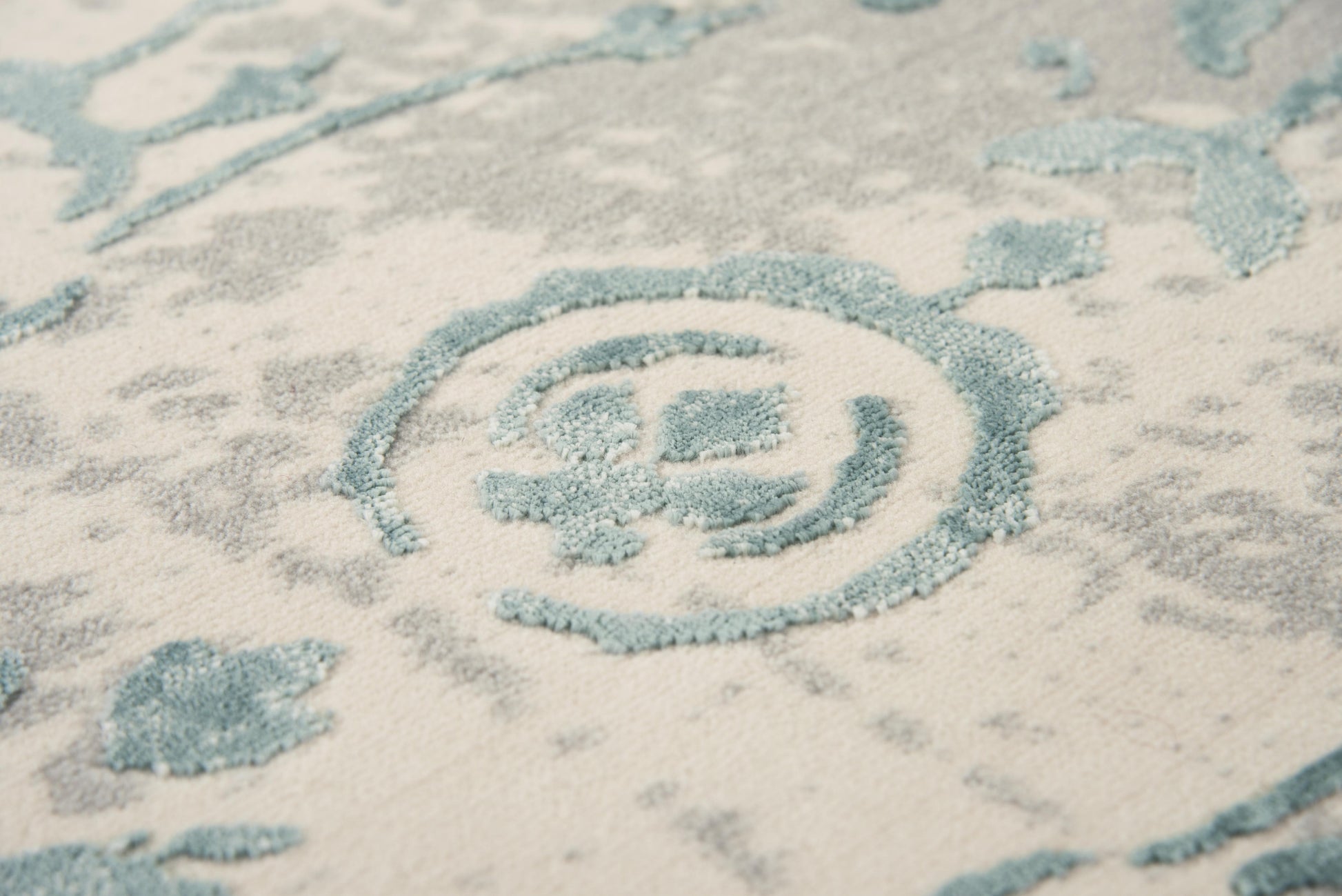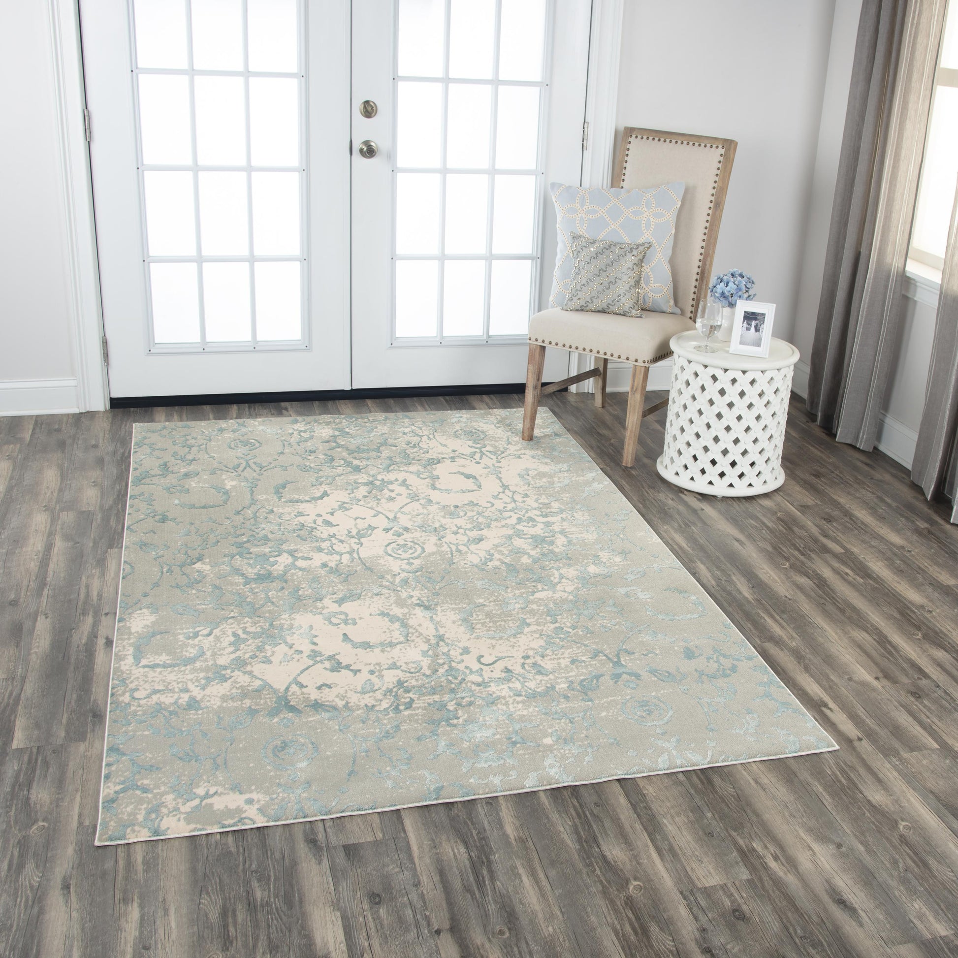 This Rizzy Home Chelsea Rug elevates your space with its ornate scrolling vines for a transitional and contemporary modern feel. The rug boasts grey, ivory, and blue hues to give your home a cool and calming look. Power-loomed in Turkey from 100-percent polyester, the material of this piece makes this rug sensationally soft and durable.