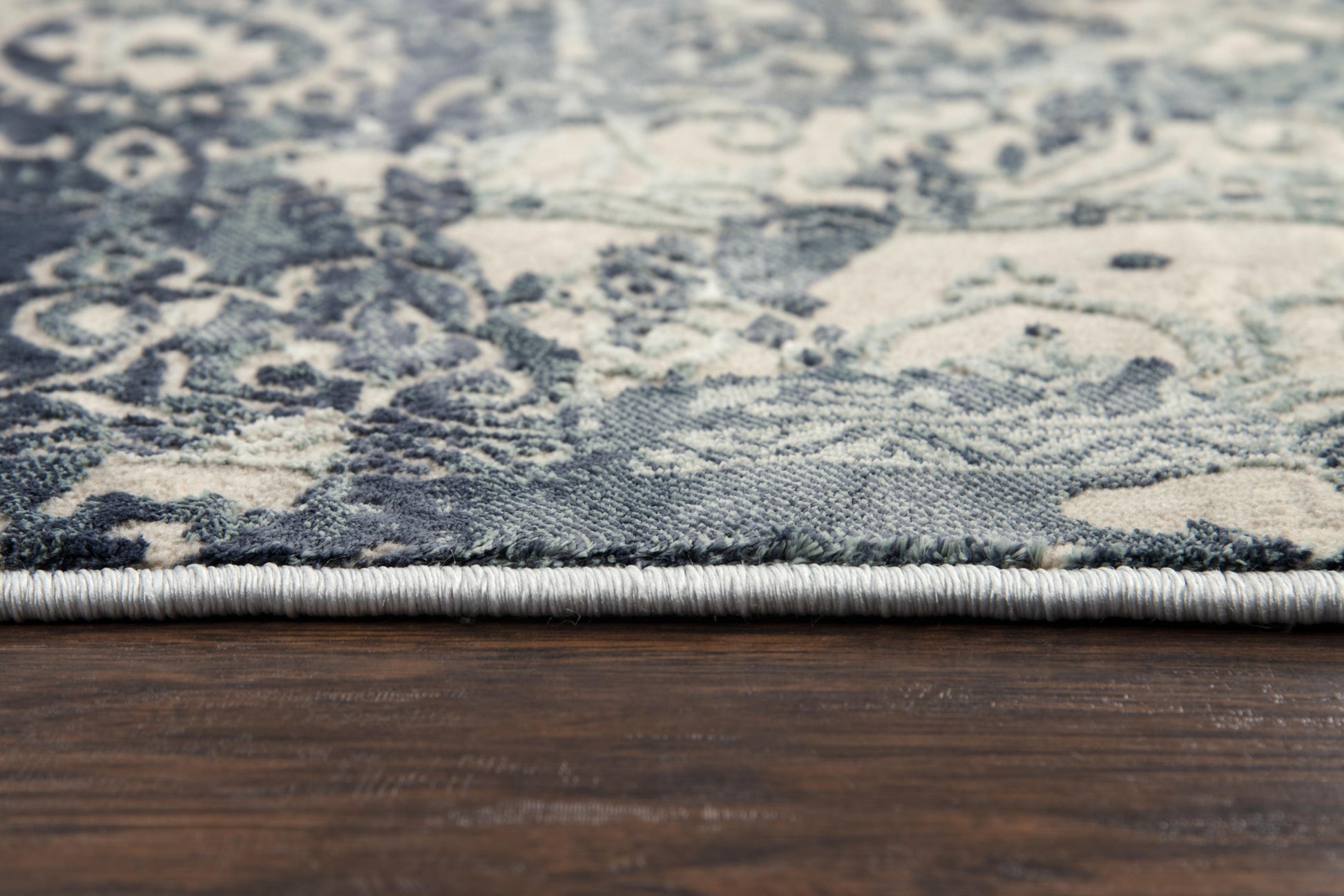 The Rizzy Home Chelsea Abstract Rug offers diverse modern and contemporary styles to enrich any room. Grey and teal come together in a balanced palette of cool hues to finish the piece. Expertly power-loomed in Turkey, the structure of this rug gives dimension and texture while the 100-percent super soft polyester material ensures durability and aesthetic.