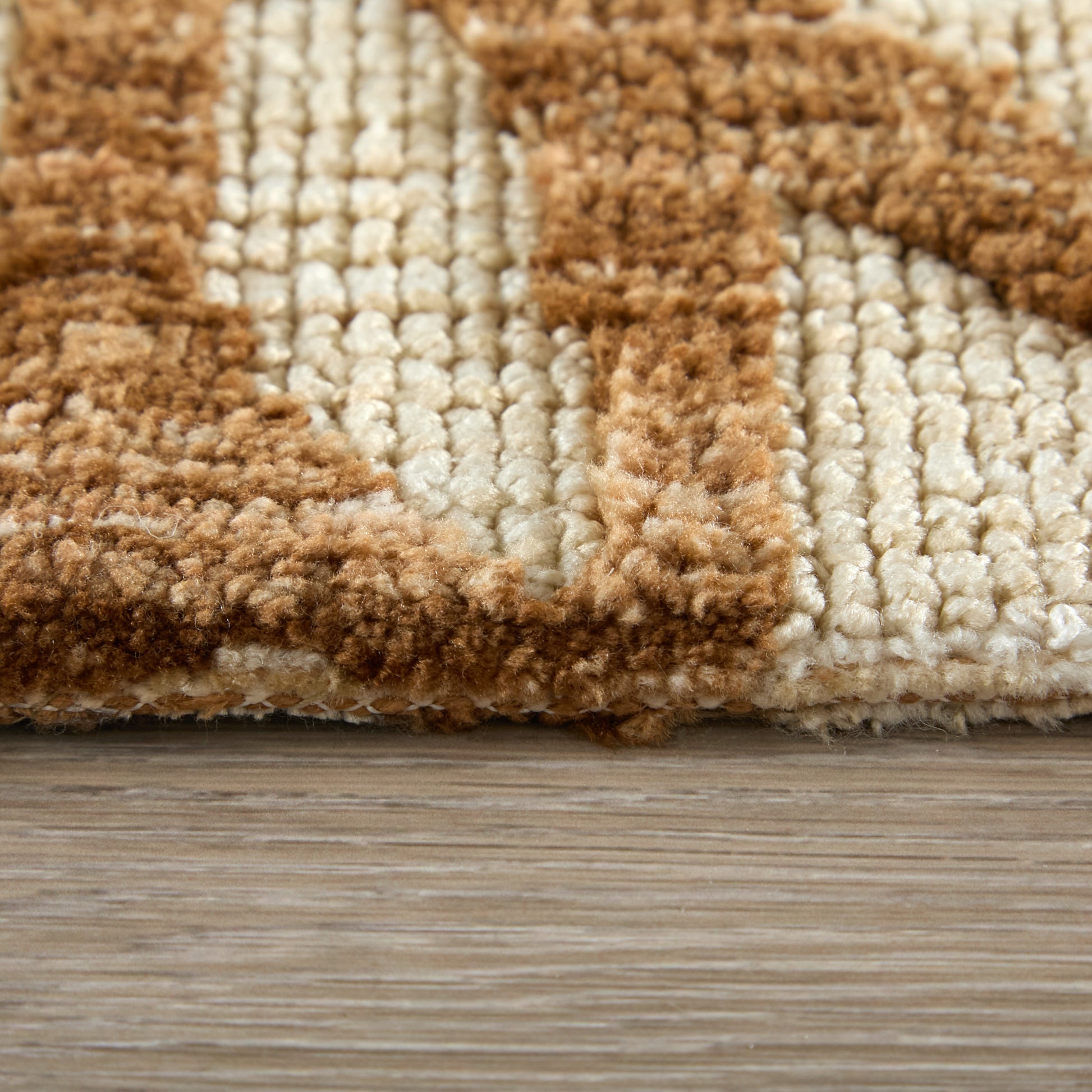 Natural Brown Rug: Featuring a modern geometric design in earthy beige and brown, it enhances any living room or bedroom with cozy home decor.