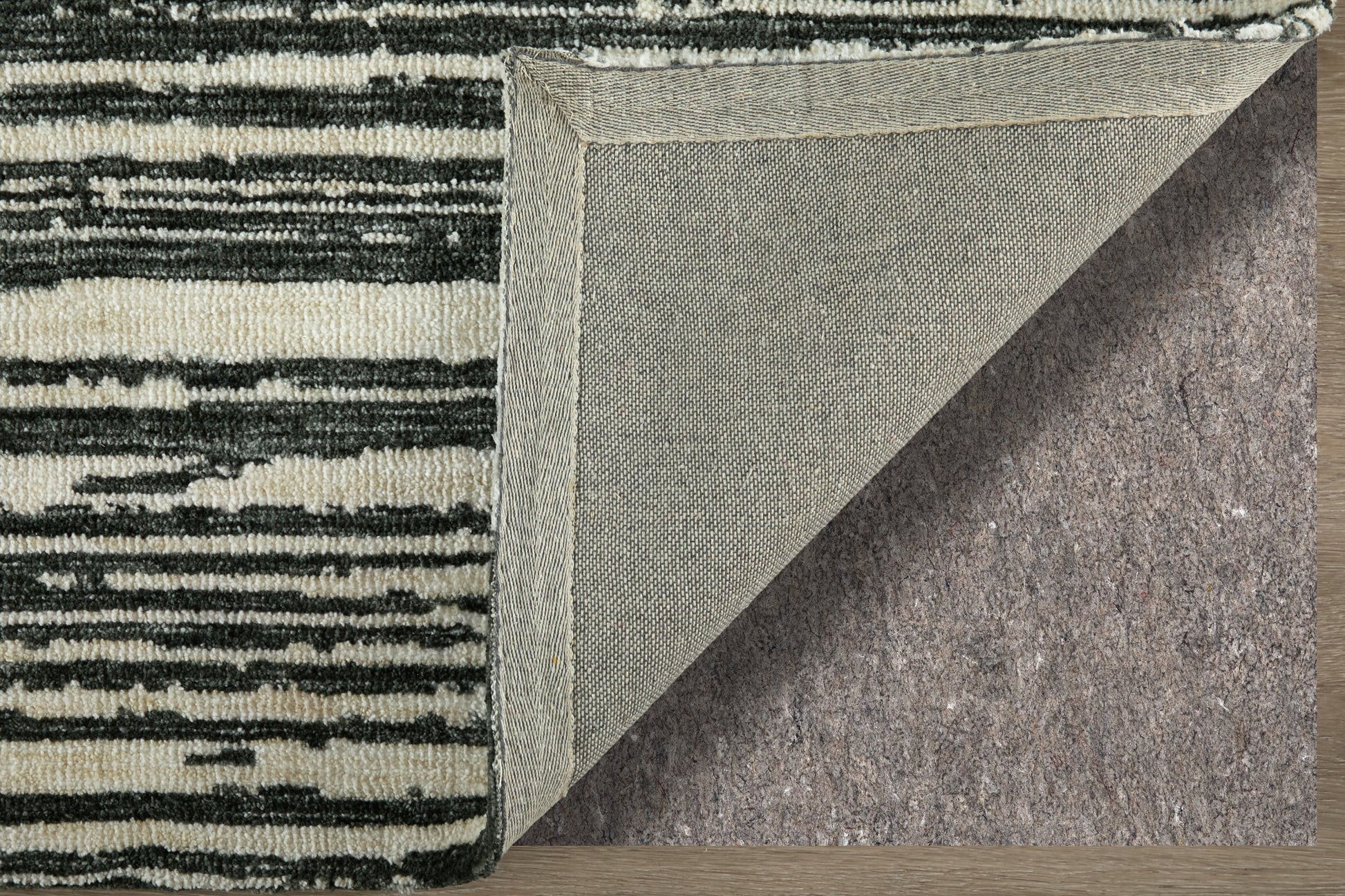 Modern Industrial Style: The black rug features a contemporary linear design with gray and ivory stripes, adding sleek charm to any home decor in living rooms or offices.