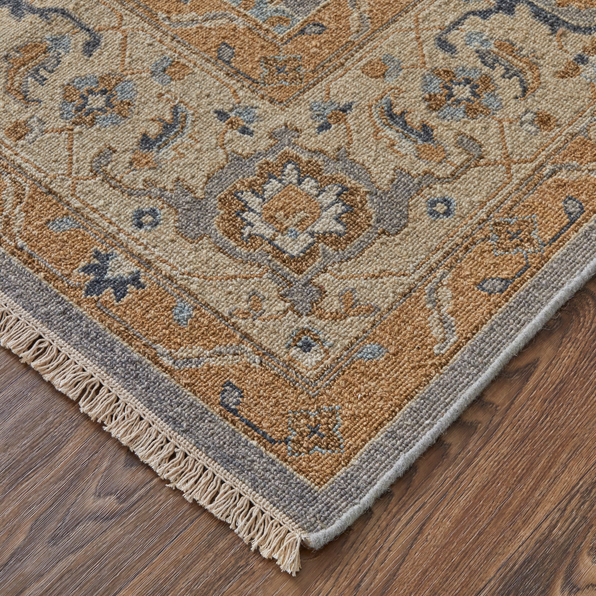 Drift into a world of traditional design with the Persian-inspired Corbitt Collection by Feizy. Intricate patterns flow effortlessly into beautifully crafted medallions and bordered motifs. Designed for the neutral aesthetic, each semi-symmetrical piece is awash with brilliantly muted tones of sandy brown, gray, and blue. The 100% wool Corbitt Collection is of the ancient Soumak construction, making it the perfect conversation piece for any living space.