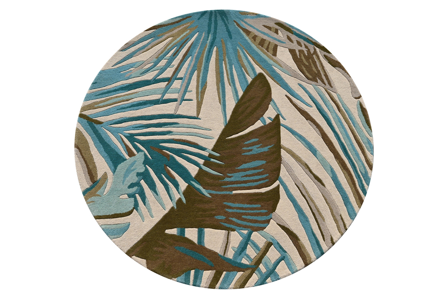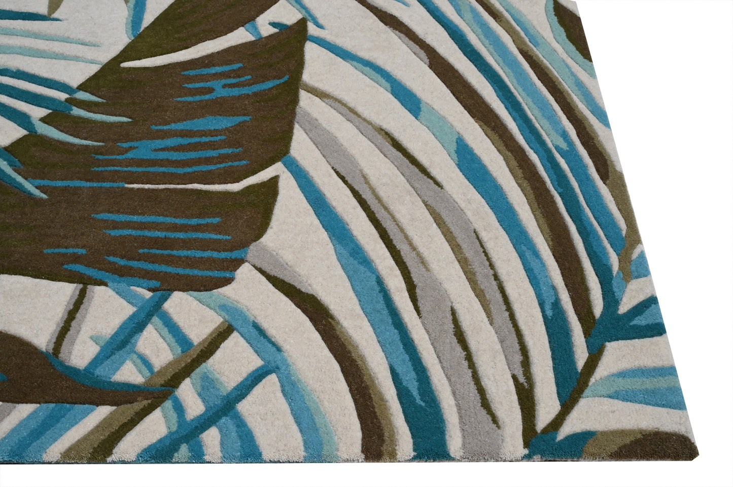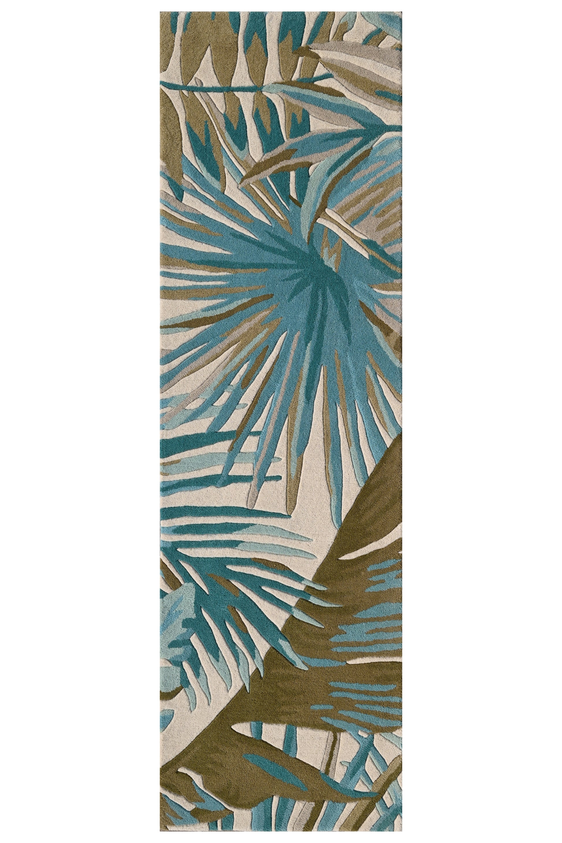 Cove 3002 Ivory/Teal Palms Hand Tufted Area Rug - KAS