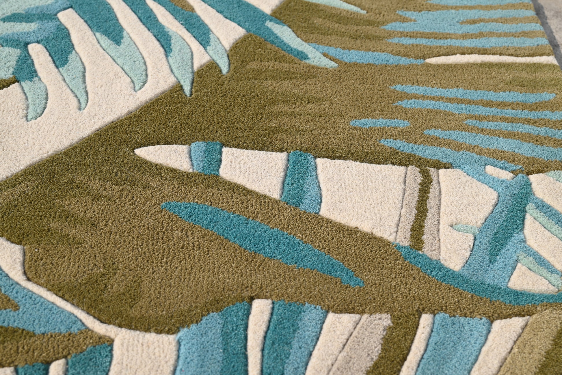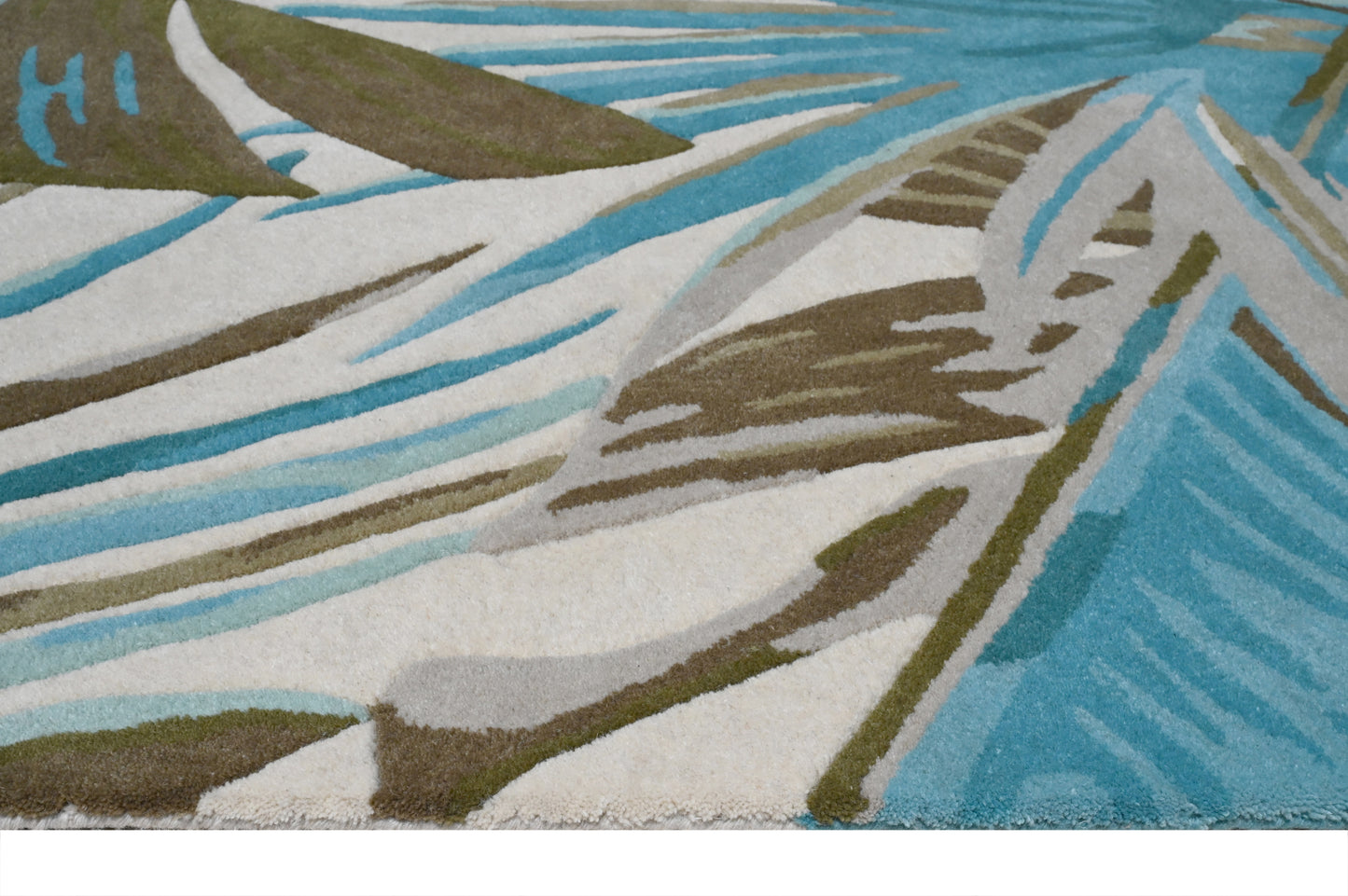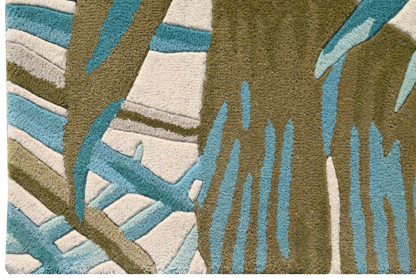 Cove 3002 Ivory/Teal Palms Hand Tufted Area Rug - KAS