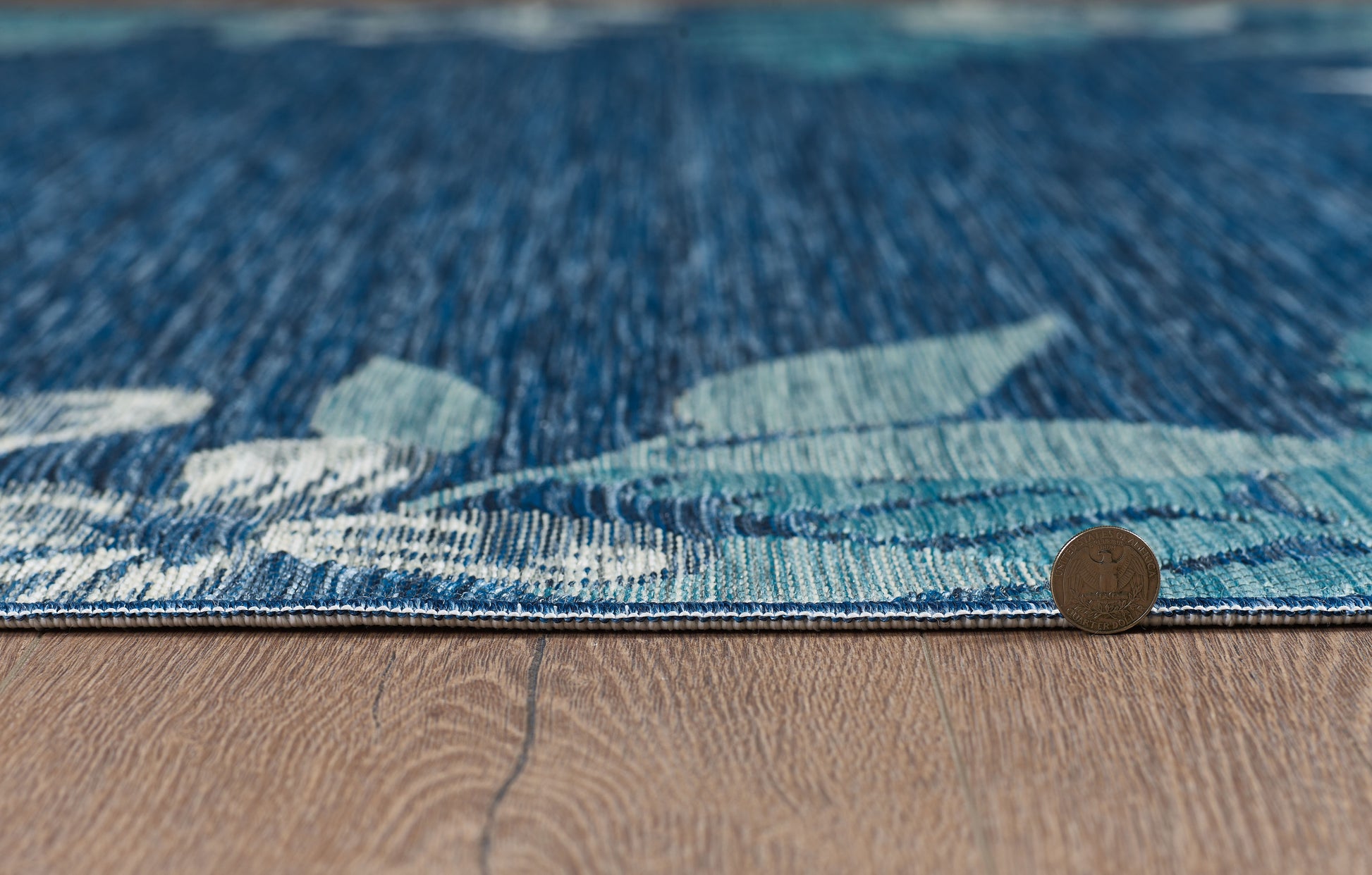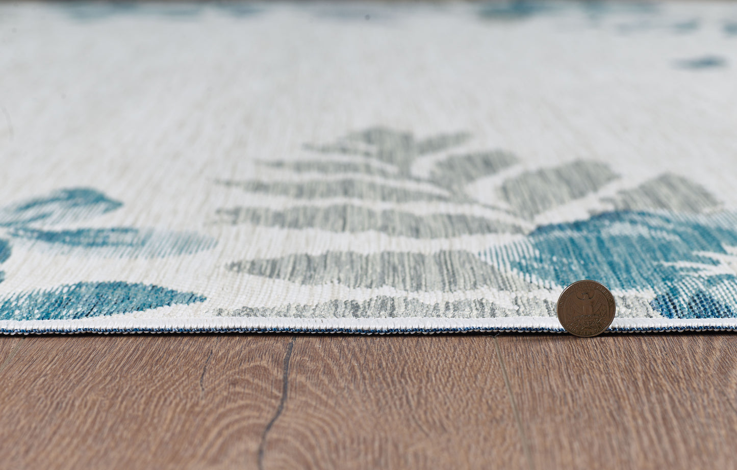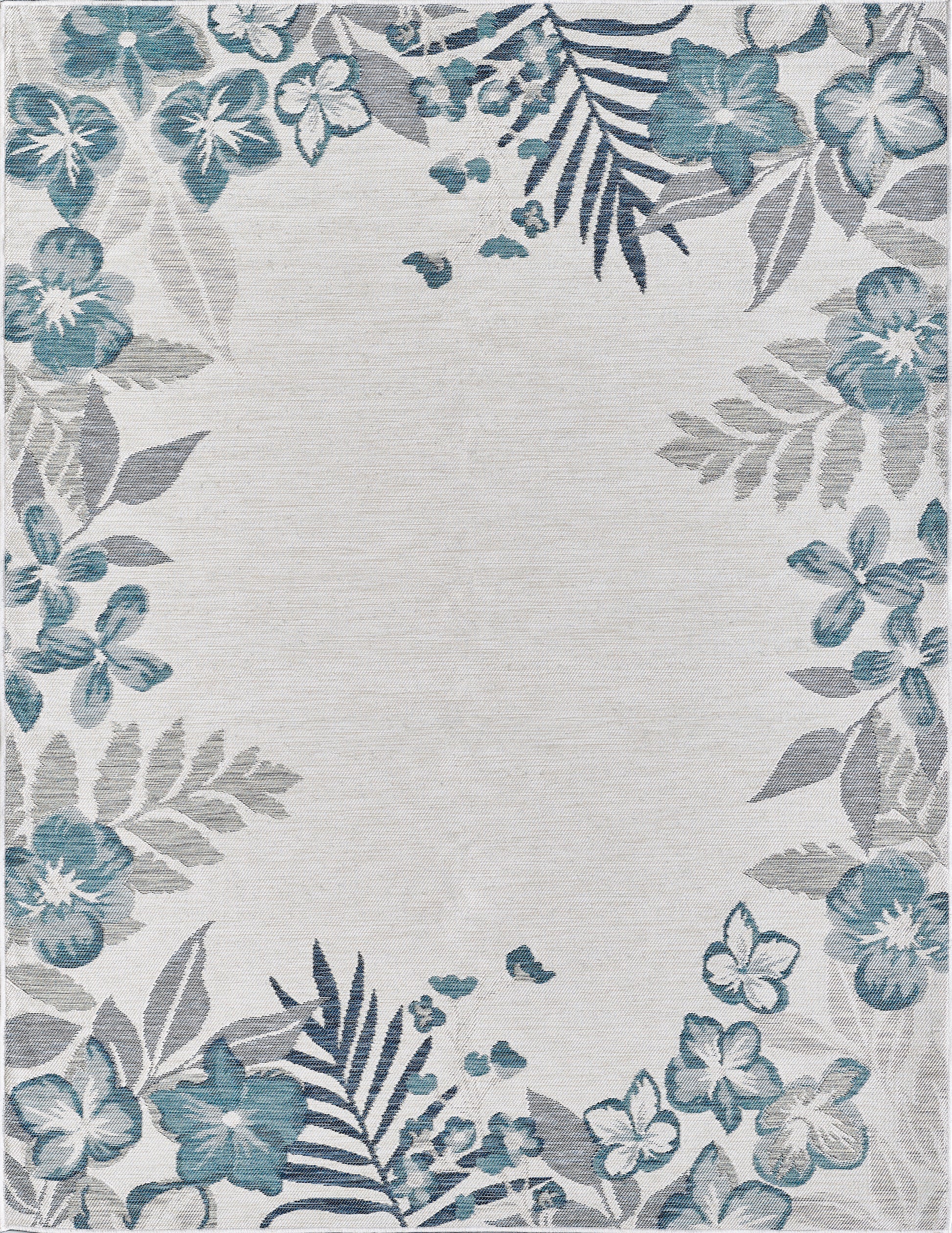 Dahlia 1404 Ivory/Blue Garden Border Machine Woven Performance Area Rug - KAS