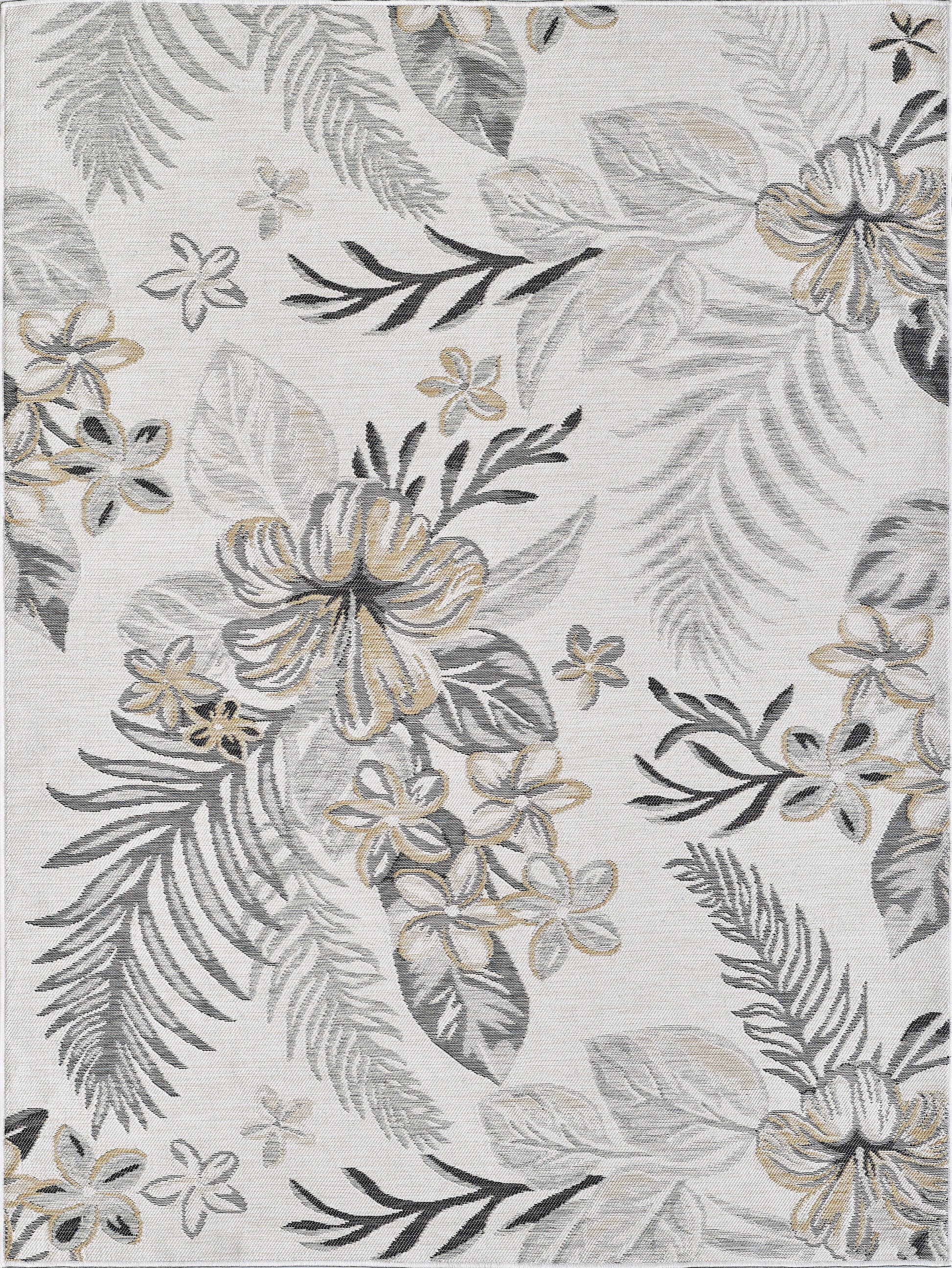 Dahlia 1408 Ivory/Brown Tropical Bouquets Machine Woven Performance Area Rug - KAS
