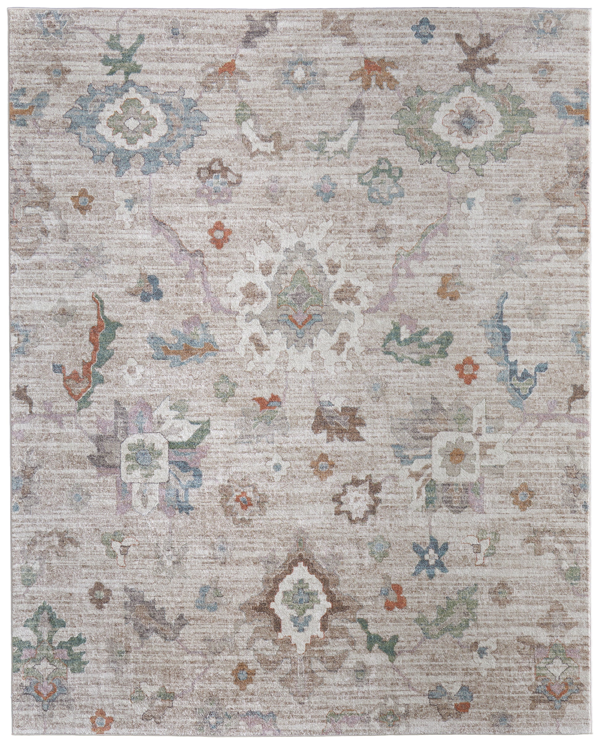 Tan Area Rug: Ornate floral motifs in muted taupe, blue, and green create a vintage charm, ideal for cozy living rooms or serene bedrooms in your home decor.