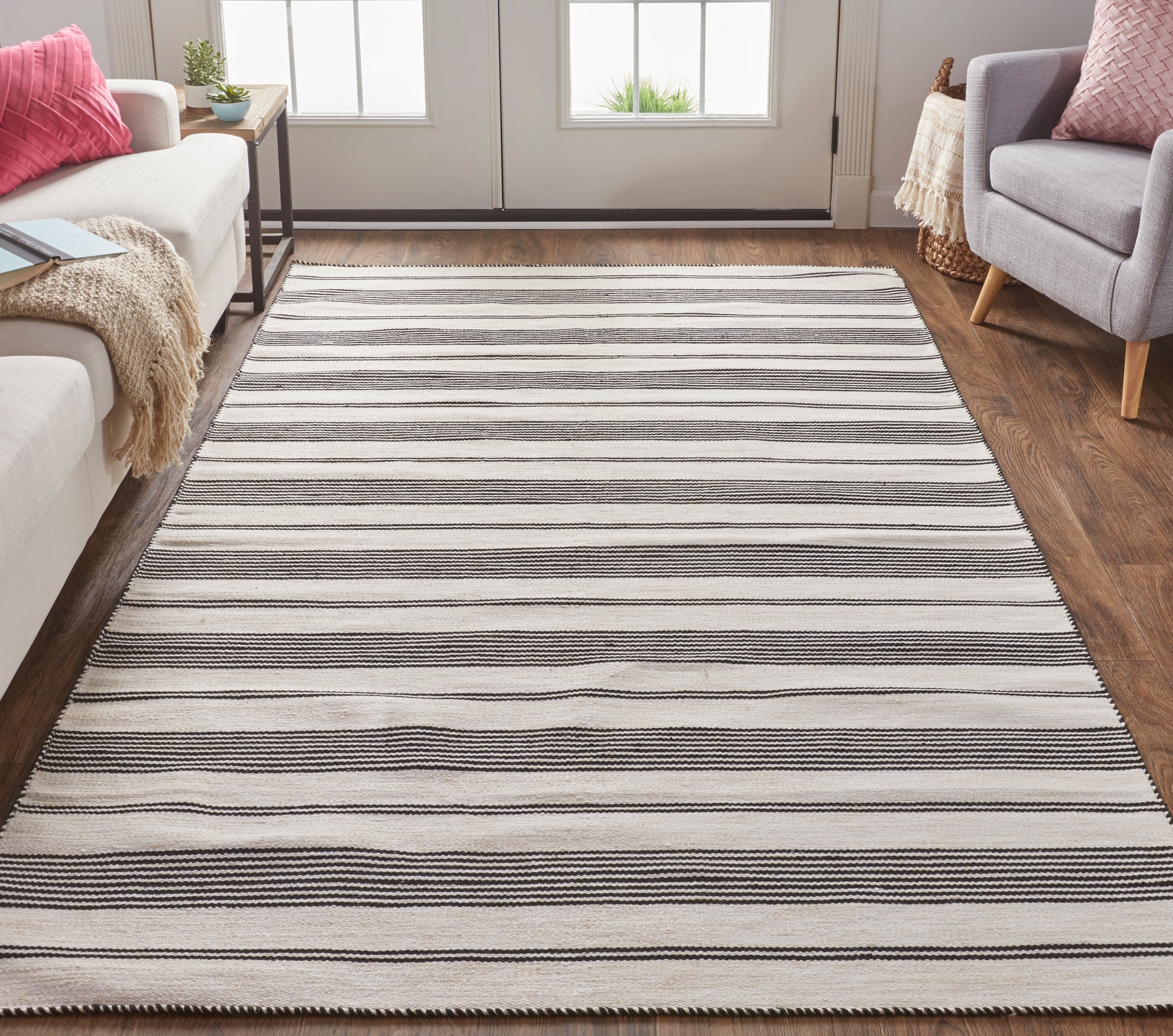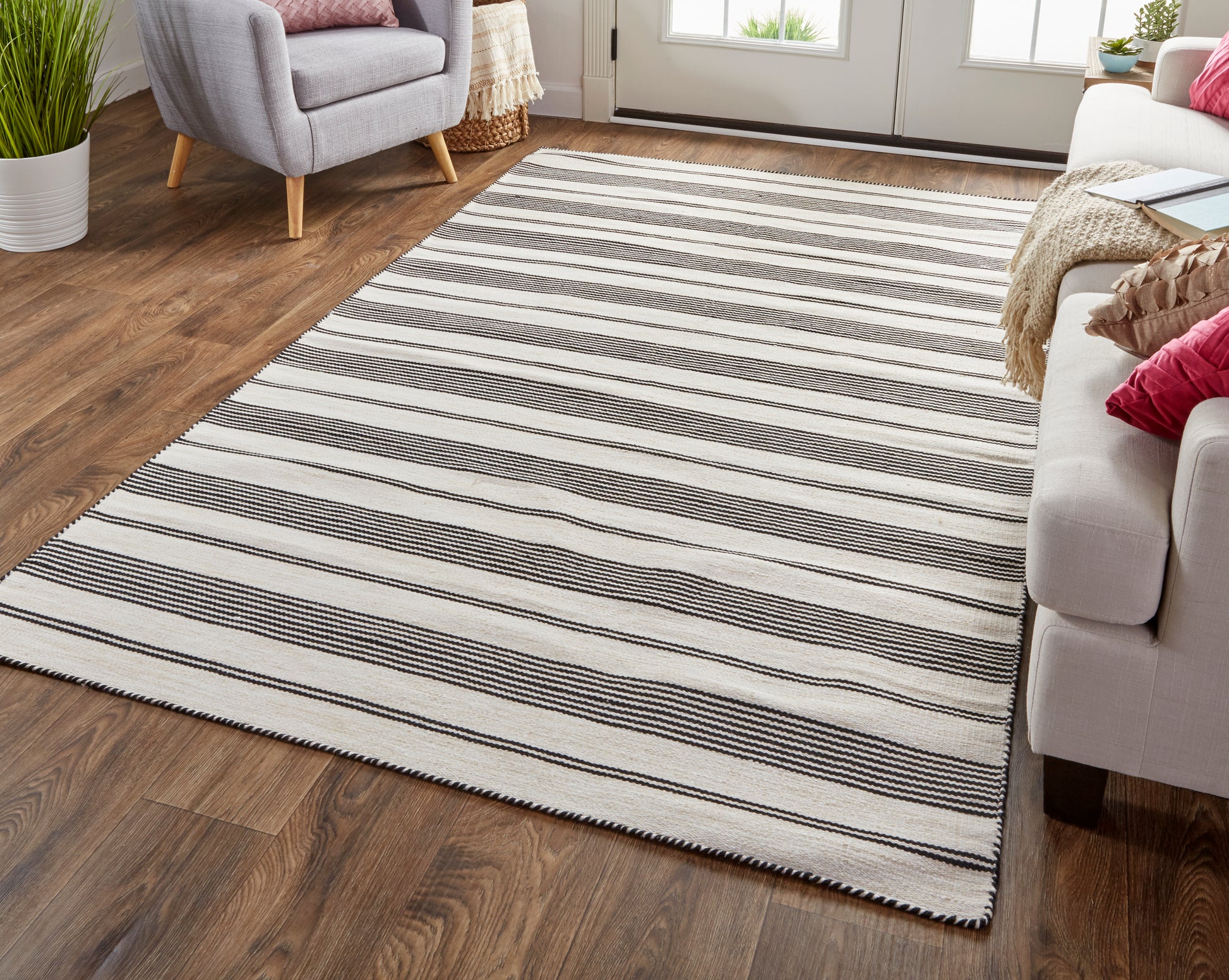 Made in India, the Feizy Duprine collection is made from eco-friendly recycled PET which is the smart choice for your busiest indoor areas. These handmade flatweave dhurries have refined solid color pin stripes that accentuate the ivory and cream background. The pop of color does not detract from its clean, classic appeal. The Duprine is the perfect addition to your nautical or coastal inspired setting.