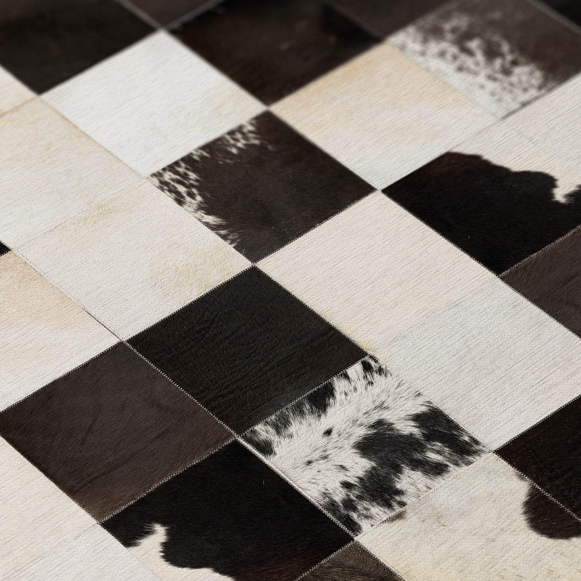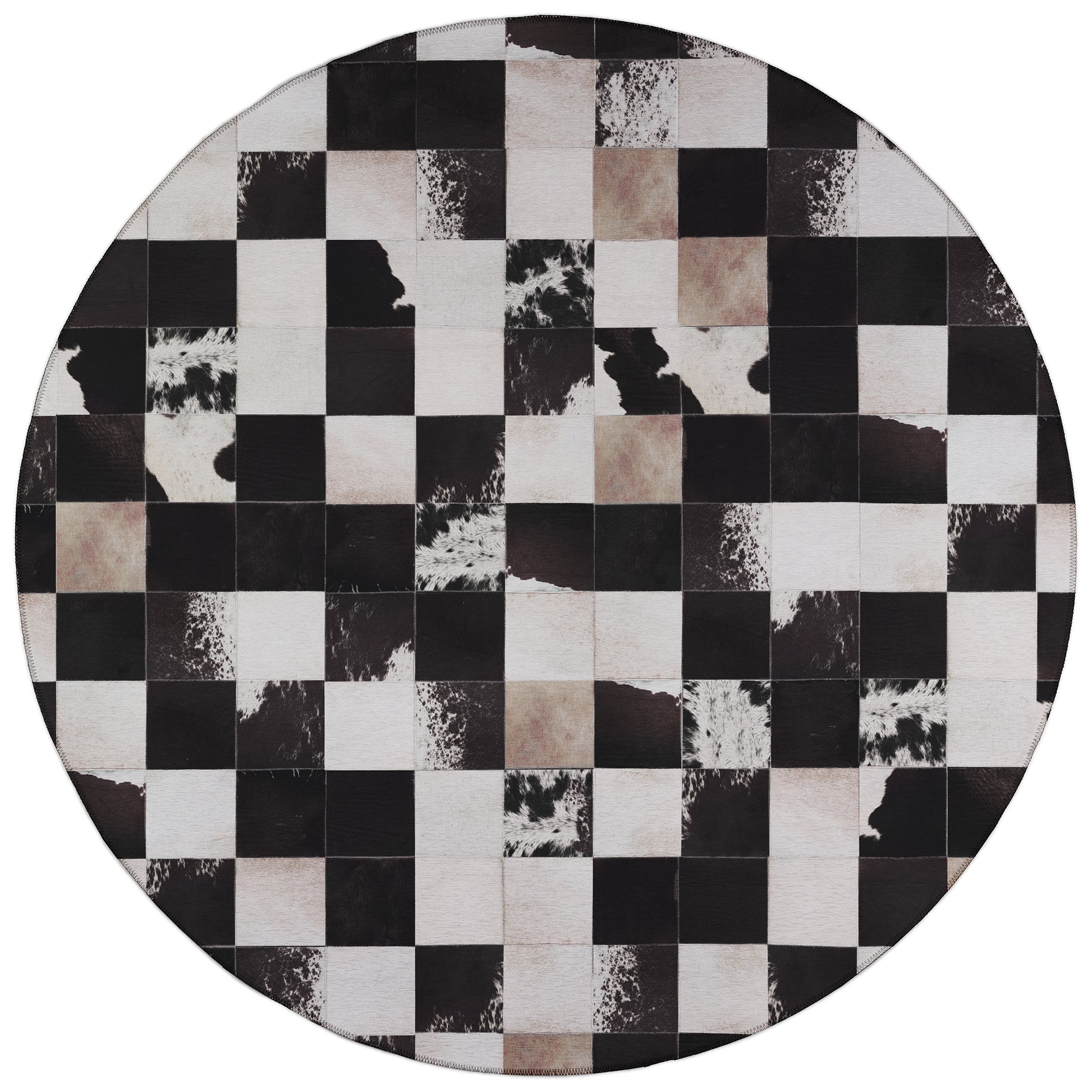 Durango is a faux hide patchwork collection. The details on these faux hide rugs look so real you will wow your guests. This stylish rug features neutral colors with gradient movement in a variety of mosaic shapes and patterns. Featuring an ultra-soft and ultra thin pile, each rug is made with 100% polyester pile complete with a non-skid backing. Final crafting in USA using domestic processing on an imported substrate. They are UV Stabilized for indoor and cover outdoor spaces. Shake out or use straight suction with vacuum, do not use a beater bar. Machine washable in cold water and air dry, some sizes may be too large for a residential washing machine and is family and pet friendly.