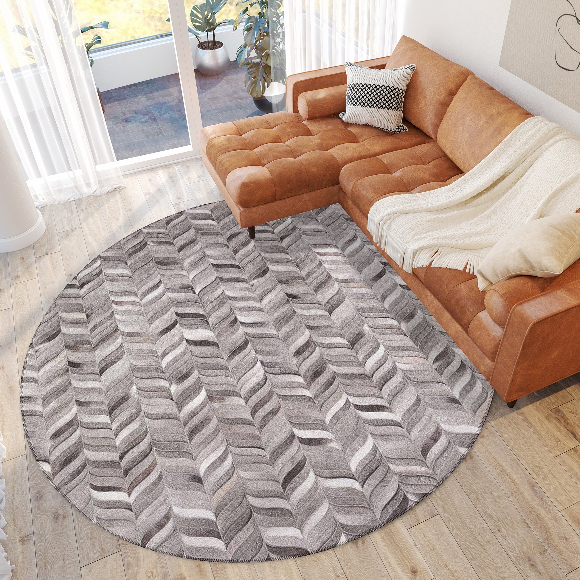 Durango is a faux hide patchwork collection. The details on these faux hide rugs look so real you will wow your guests. This stylish rug features neutral colors with gradient movement in a variety of mosaic shapes and patterns. Featuring an ultra-soft and ultra thin pile, each rug is made with 100% polyester pile complete with a non-skid backing. Final crafting in USA using domestic processing on an imported substrate. They are UV Stabilized for indoor and cover outdoor spaces. Shake out or use straight suction with vacuum, do not use a beater bar. Machine washable in cold water and air dry, some sizes may be too large for a residential washing machine and is family and pet friendly.