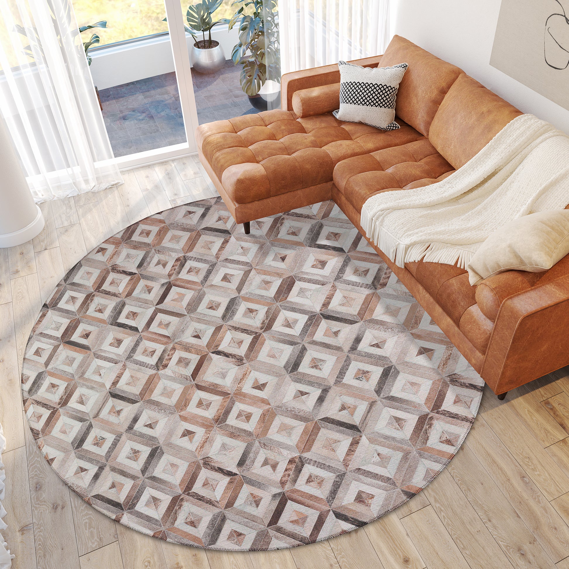 Durango is a faux hide patchwork collection. The details on these faux hide rugs look so real you will wow your guests. This stylish rug features neutral colors with gradient movement in a variety of mosaic shapes and patterns. Featuring an ultra-soft and ultra thin pile, each rug is made with 100% polyester pile complete with a non-skid backing. Final crafting in USA using domestic processing on an imported substrate. They are UV Stabilized for indoor and cover outdoor spaces. Shake out or use straight suction with vacuum, do not use a beater bar. Machine washable in cold water and air dry, some sizes may be too large for a residential washing machine and is family and pet friendly.