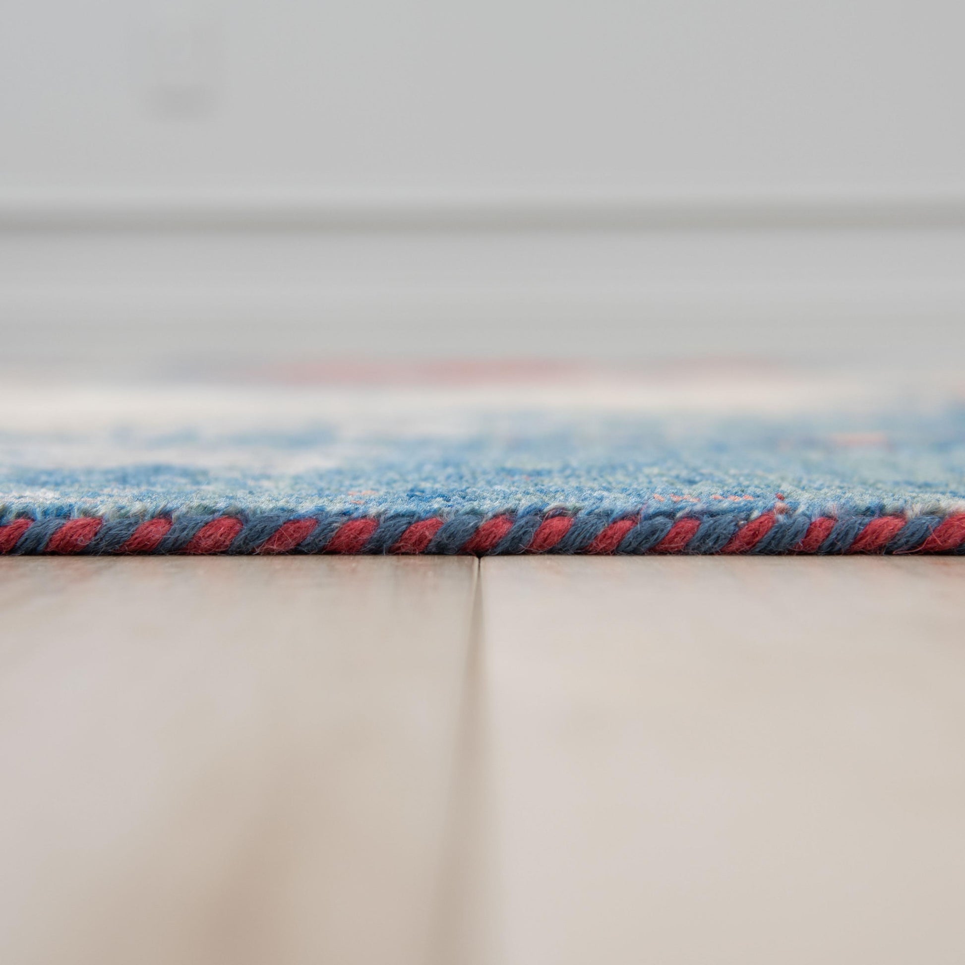 The Eclipse collection by Rizzy Home is a testament to timeless craftsmanship and modern design. This hybrid rug is meticulously woven on precision looms using 100% proprietary New Zealand wool, offering a softness and flexibility that rivals hand-knotted designs. Its abstract, overdye pattern features rich layers of multi-blues, reds, grays, and creams, striking the perfect balance between contemporary and transitional styles. Naturally dyed with herbal extracts and hand-serged by skilled artisans, this rug is a sophisticated centerpiece in any space.
