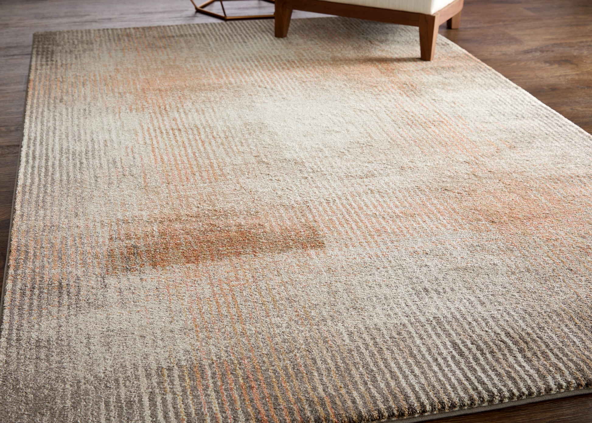 Ivory Rug: Contemporary abstract design with gradient tones of rust, beige, and gray, perfect for modern living rooms or cozy study spaces.