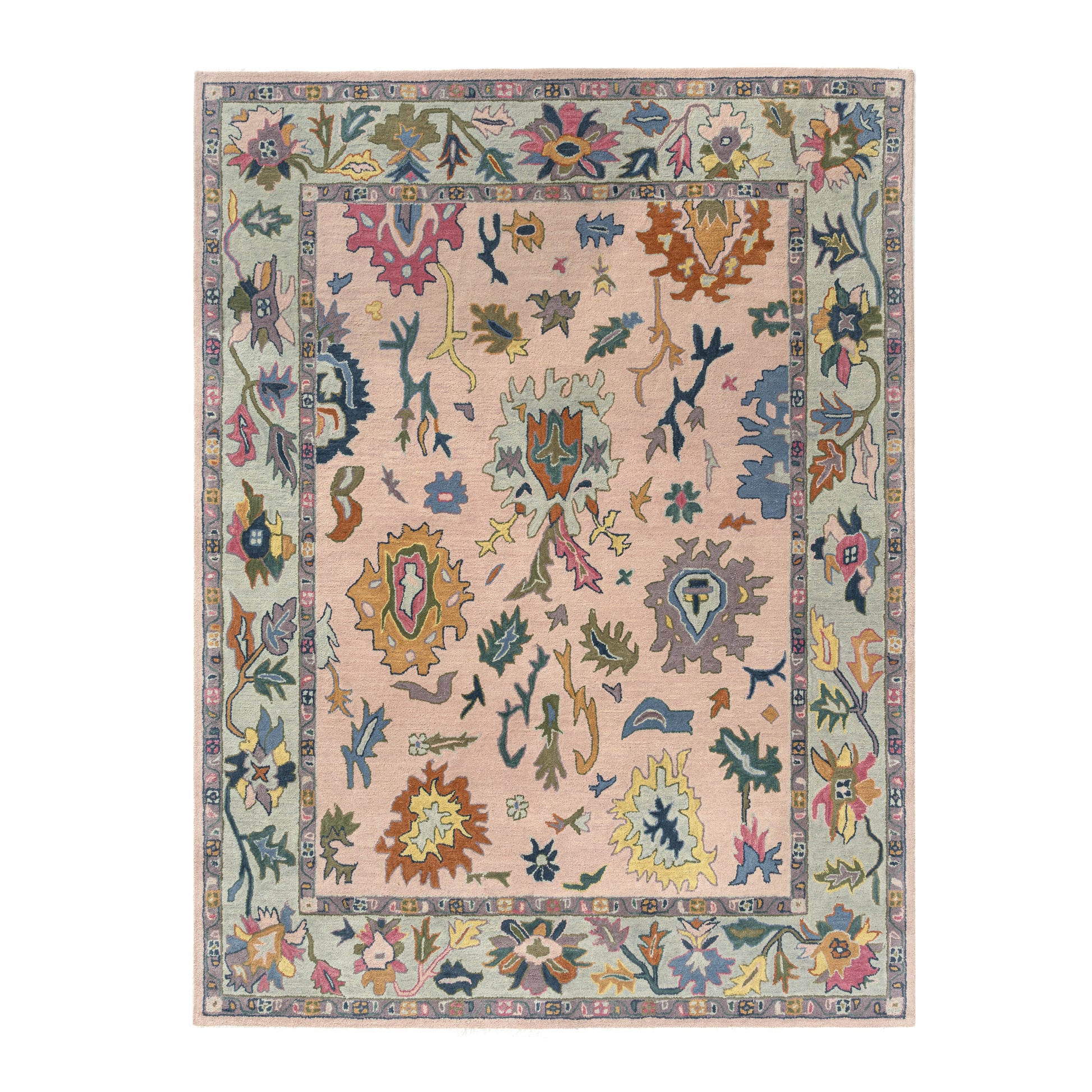 Add timeless character and artistic depth to your home, apartment, or dorm with this hand-tufted indoor area rug in rich pink and multicolor tones. Showcasing a vintage-inspired bordered floral Oushak design, this rug brings a curated, lived-in look that beautifully complements traditional, transitional, and bohemian interiors. Expertly hand-tufted in India from a durable New Zealand and Argentinian wool blend, it offers a soft, cushioned feel underfoot while standing up well in everyday living - ideal for high-traffic areas. The 5'9" x 8'9" size is ideal for living rooms, dining areas, or bedrooms, providing a balanced foundation that ties the space together. Ideal for those who appreciate artisanal craftsmanship and bold, colorful design.