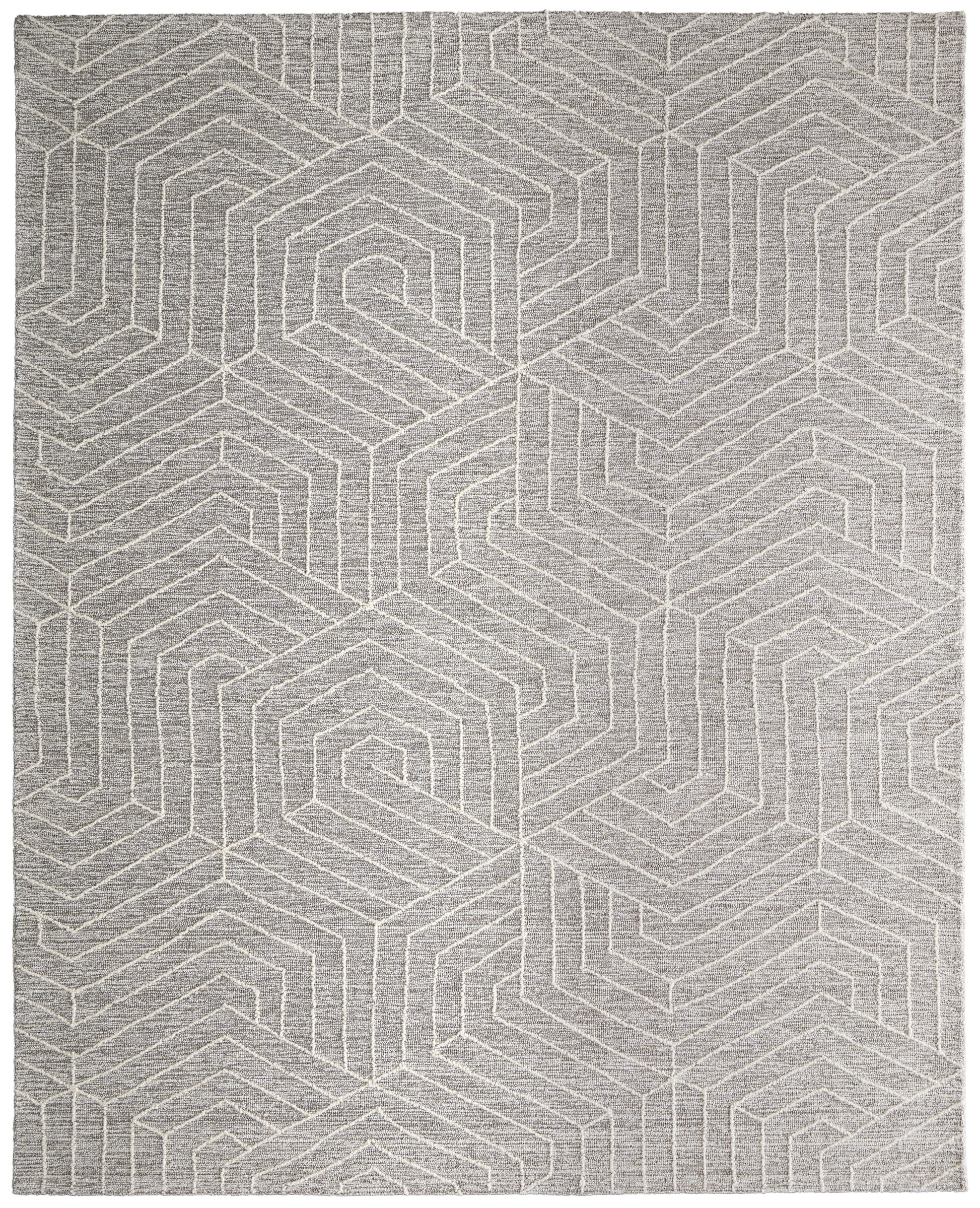 Gray Geometric Rug: Featuring interlocking hexagonal patterns, this modern gray rug enhances contemporary home decor in living rooms or casual spaces.