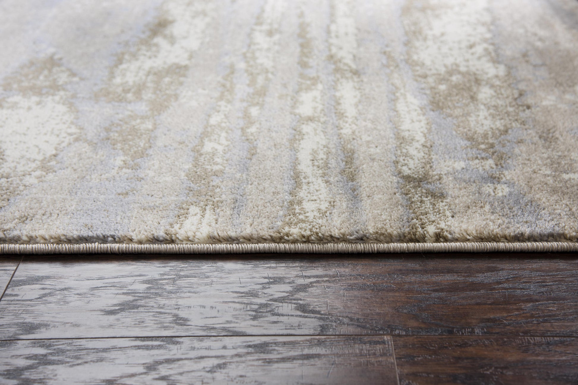 This ultramodern area rug from Rizzy Home’s exclusive Encore Collection creates an artist-inspired neutral beige, gray and ivory wiped abstract color design. Its durable polypropylene and jute backing construction ensures long-life durability that can support high-traffic areas while still remaining stylish. This rug adds a unique element of sophistication and modern décor to any room.