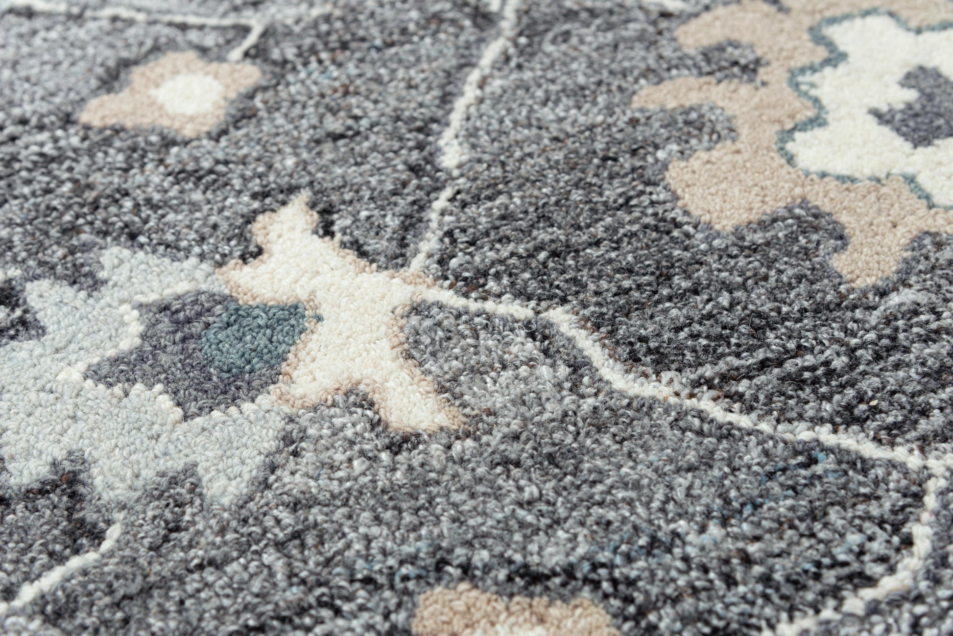 Varied shades of grey make the perfect field for the beige and ivory floral designs of this Rizzy Home Essence Rug to quietly rest. Patterned after age-old Persian-style rugs, this piece combines a blend of hand-tufted wool and recycled polyester to ensure your rug will give you years of durable wear. The edges of this piece are fully bound for easy cleaning and make a wonderful addition to your transitional or traditional style home décor.