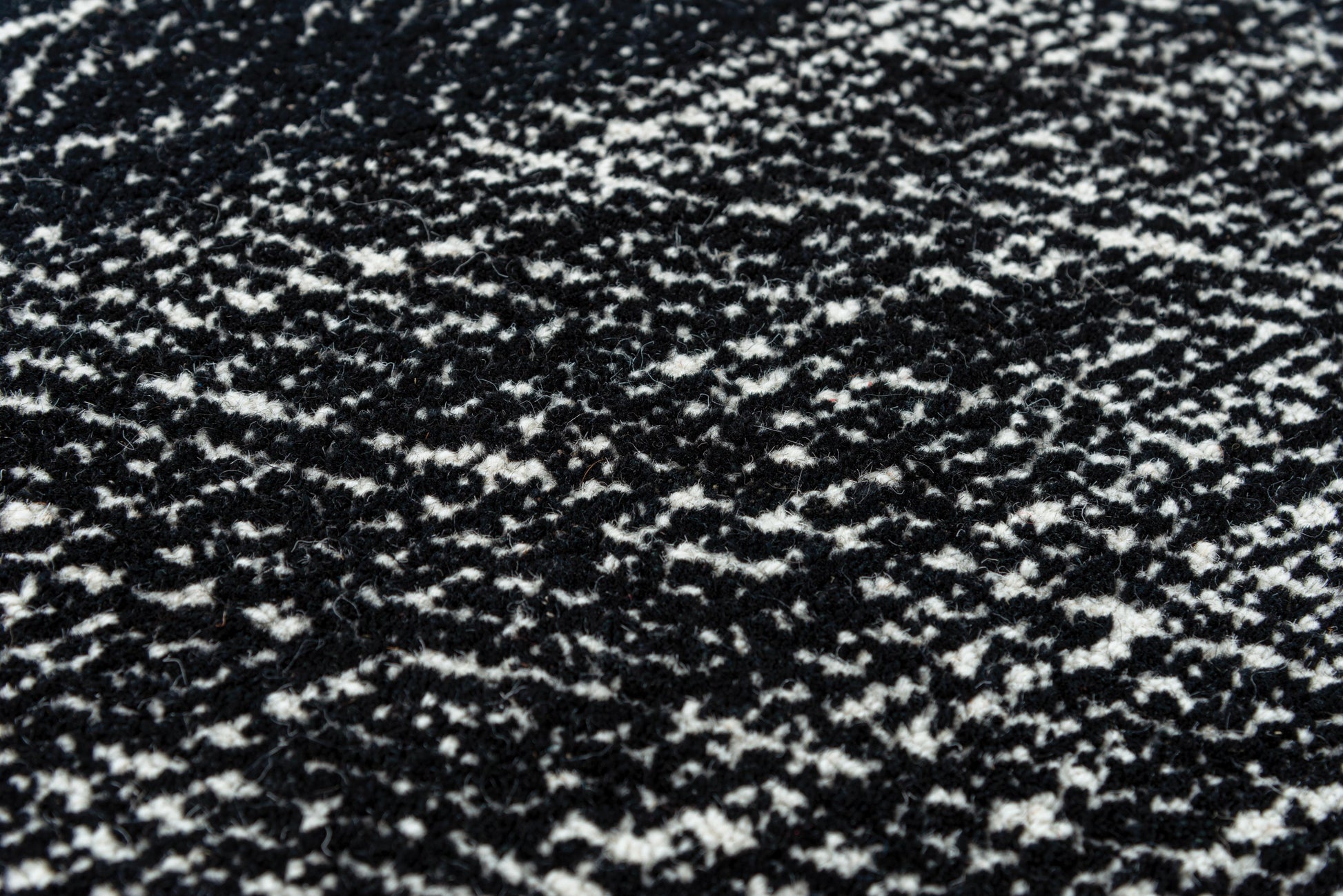 Make a statement in your home with this bold Rizzy Home Etchings Black Geometric Rug. This black rug has a geometric design using ivory strands that give it a modern style. Made of 100-percent wool, this transitional rug will look striking in your office or living room. This hand-tufted rug with a bound edge is sure to complete your home.