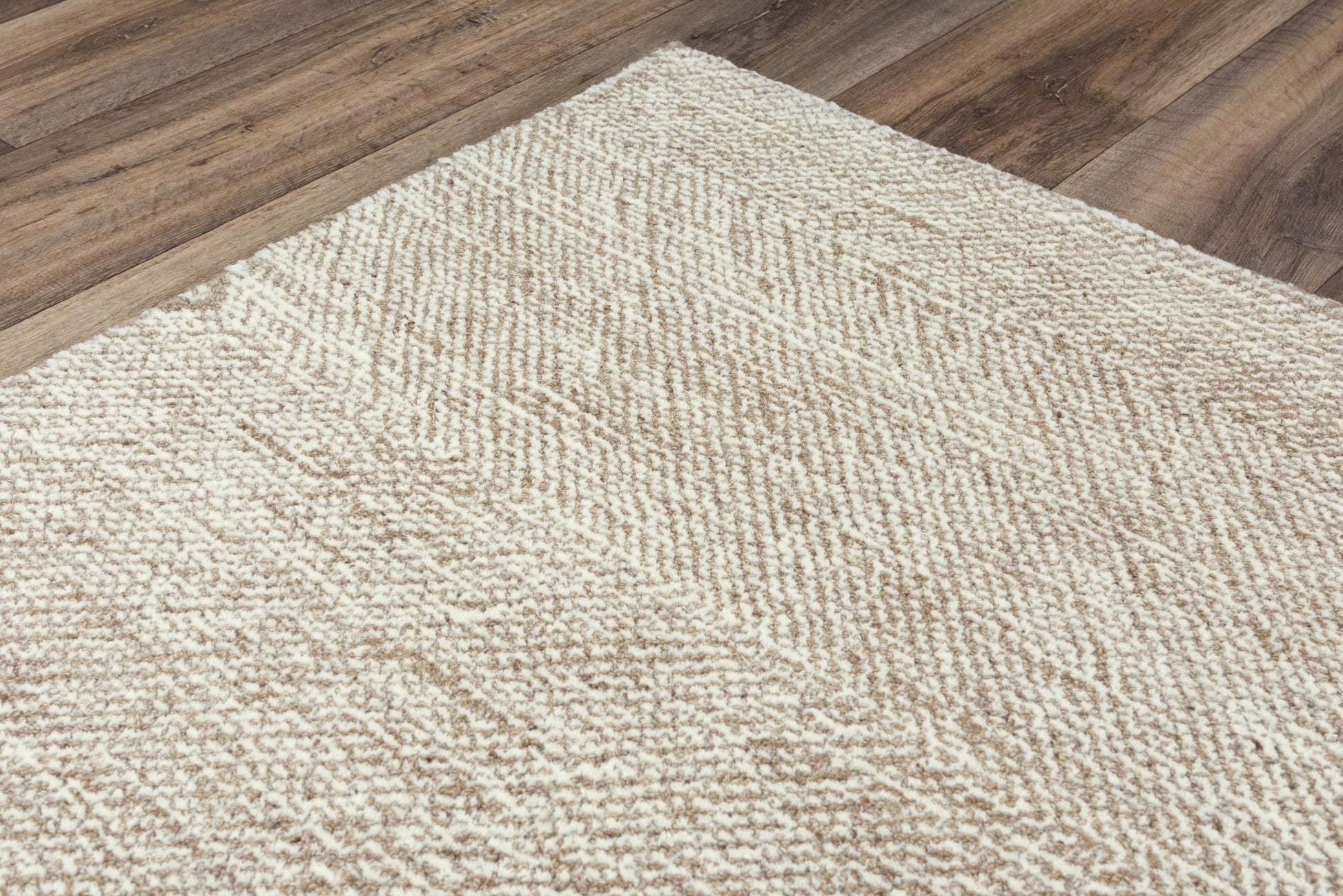 The warm color palette in this Rizzy Home Etchings Tan Geometric Rug makes it the perfect finishing touch for any cozy space. Understated and sophisticated, this transitional rug features a chevron design in tan and ivory. The modern style allows it to blend with your living room or bedroom. This hand-tufted rug is made of 100-percent wool with a bound edge, creating a masterpiece for your home.