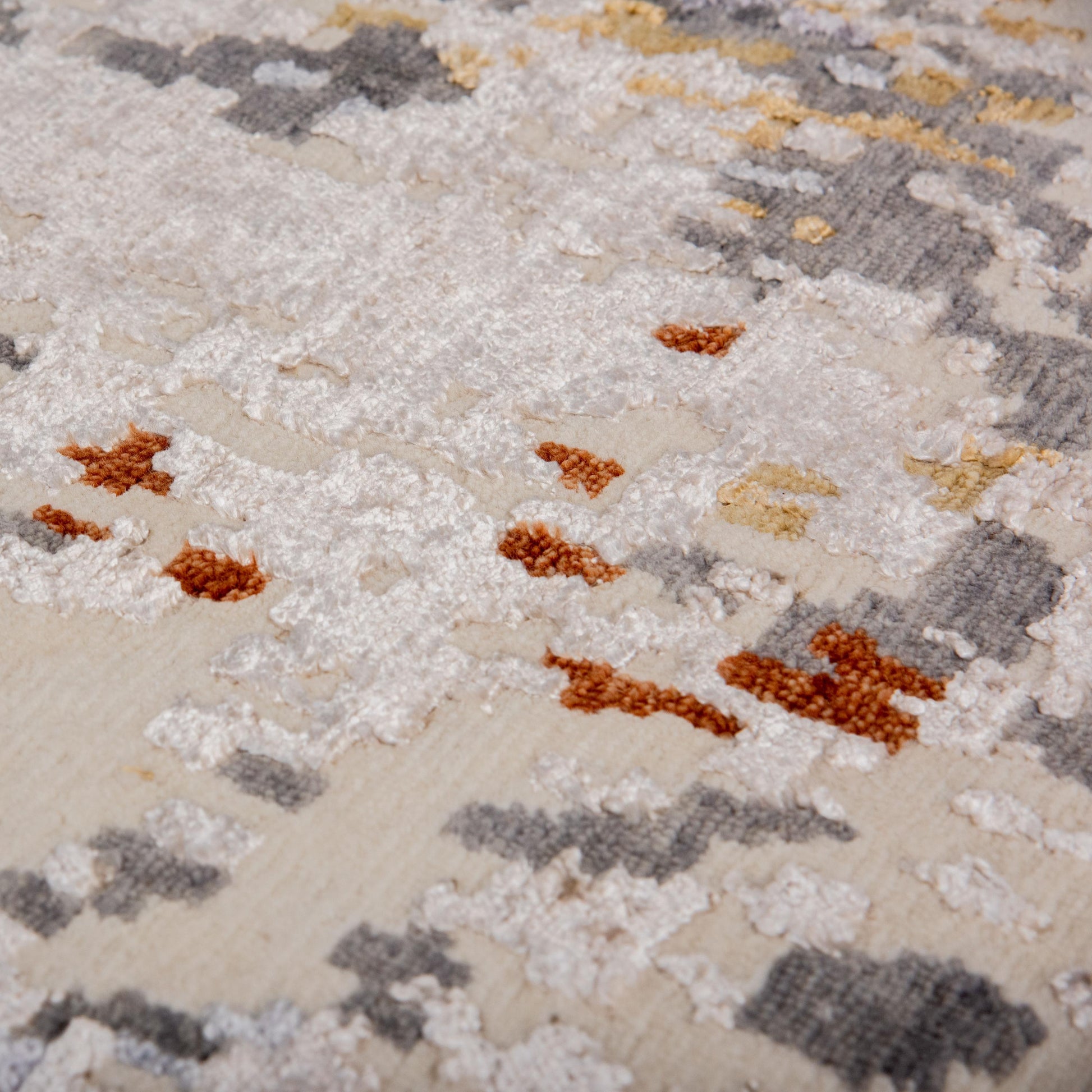 Artisanal craftsmanship meets contemporary elegance in this stunning rug from Rizzy Home's prestigious Evolution Collection. Crafted with meticulous care and attention to every detail, this rug is more than just a floor covering; it's an elevated piece of art to anchor any refined space with unrivaled beauty and sophistication. Hand-knotted, this rug features a luxurious cut pile crafted from a blend of Durapoly and wool, ensuring both durability and indulgent softness underfoot. Adorned in a rich colorful palette of rust, brown, silver, beige, and ivory, this rug boasts beautiful updated fashion colors that breathe life into any room. Its abstract design adds a touch of modernity and flair, making it the perfect anchoring centerpiece for any refined décor or chic ultramodern interior.