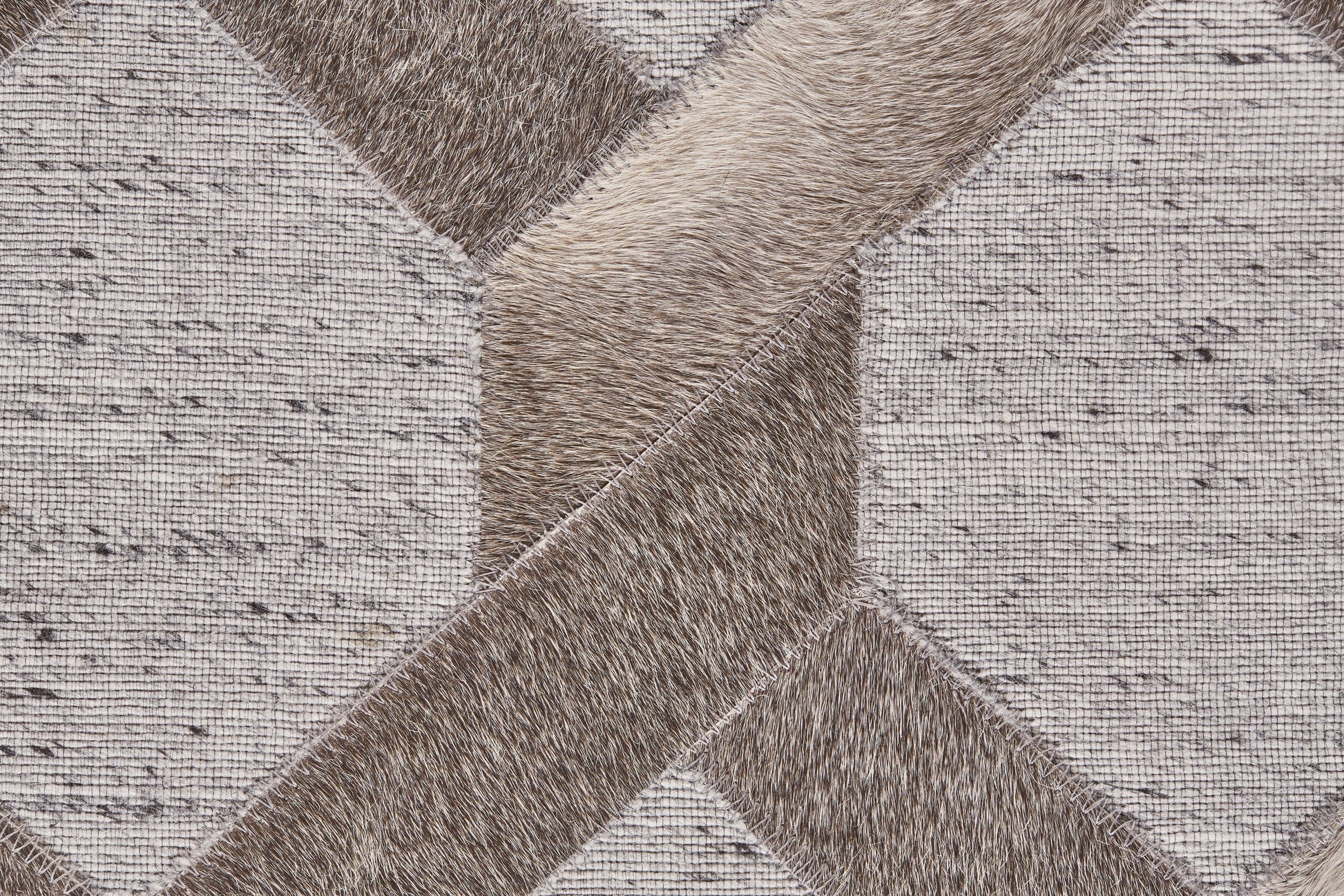 The Feizy Fannin collection combines rustic design with modern artistry. Handmade with viscose and leather, each rug delivers visual appeal and textural interest to infuse any space with distinctive style and contemporary charm. Bold trellis patterns crafted from animal hide demand attention on design-friendly palettes like of gray, brown and ivory.