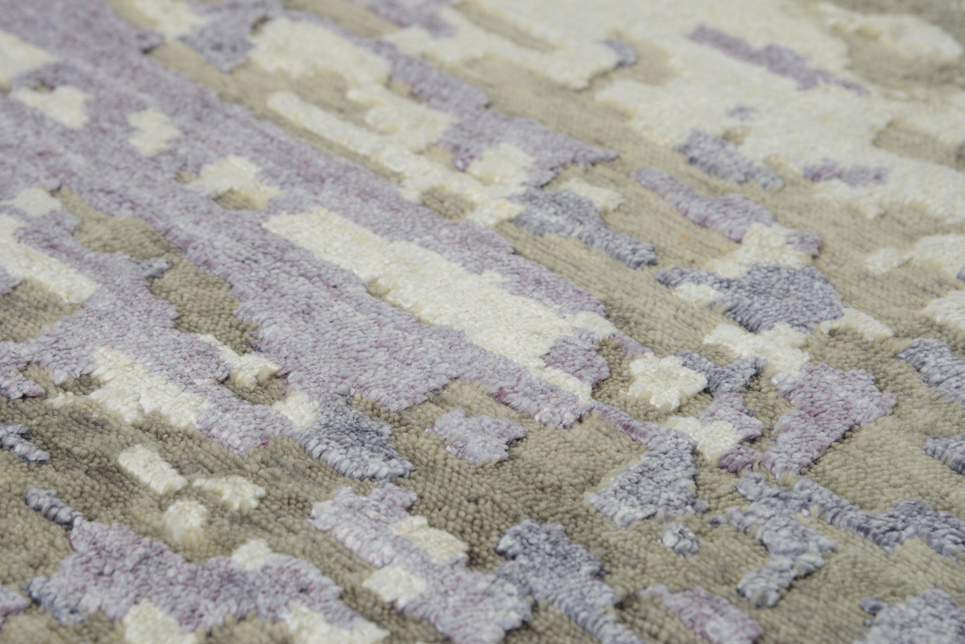 For a fabulous modern lavender splash, add the Rizzy Home Finesse Beige, Ivory, and Lavender Hand-knotted Rug to your home. Crafted by artisans using 80-percent hand-spun New Zealand wool and 20-percent silvery Tencel in shades of beige, ivory, lavender, and grey, this impressive piece is hand-knotted, hand-carved, hand-surged, and then hand-washed. Each step in the well-honed method of producing fine carpets brings richer details to life for your industrial style.