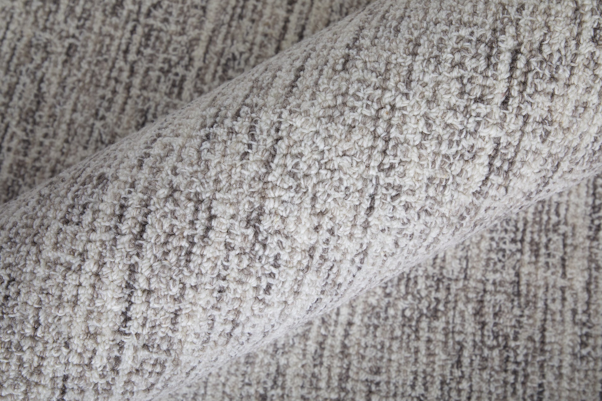 The Freemont Collection by Thom Filicia, originating from India, showcases fine Indian wool in a hand-tufted construction. Space-dyed and finished with tip shearing, the loop pile offers a textured surface with subtle variations. This contemporary rug, in light gray and ivory, brings understated elegance to any room.