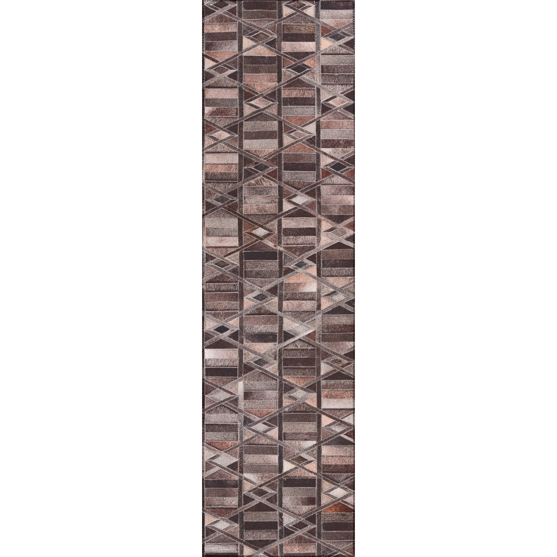 Stetson is a faux hide patchwork collection. The details on these faux hide rugs look so real you will wow your guests. This stylish rug features neutral colors with gradient movement in a variety of mosaic shapes and patterns. Featuring an ultra-soft and ultra thin pile, each rug is made with 100% polyester pile complete with a non-skid backing. Final crafting in USA using domestic processing on an imported substrate. They are UV Stabilized for indoor and cover outdoor spaces. Shake out or use straight suction with vacuum, do not use a beater bar. Machine washable in cold water and air dry, some sizes may be too large for a residential washing machine and is family and pet friendly.