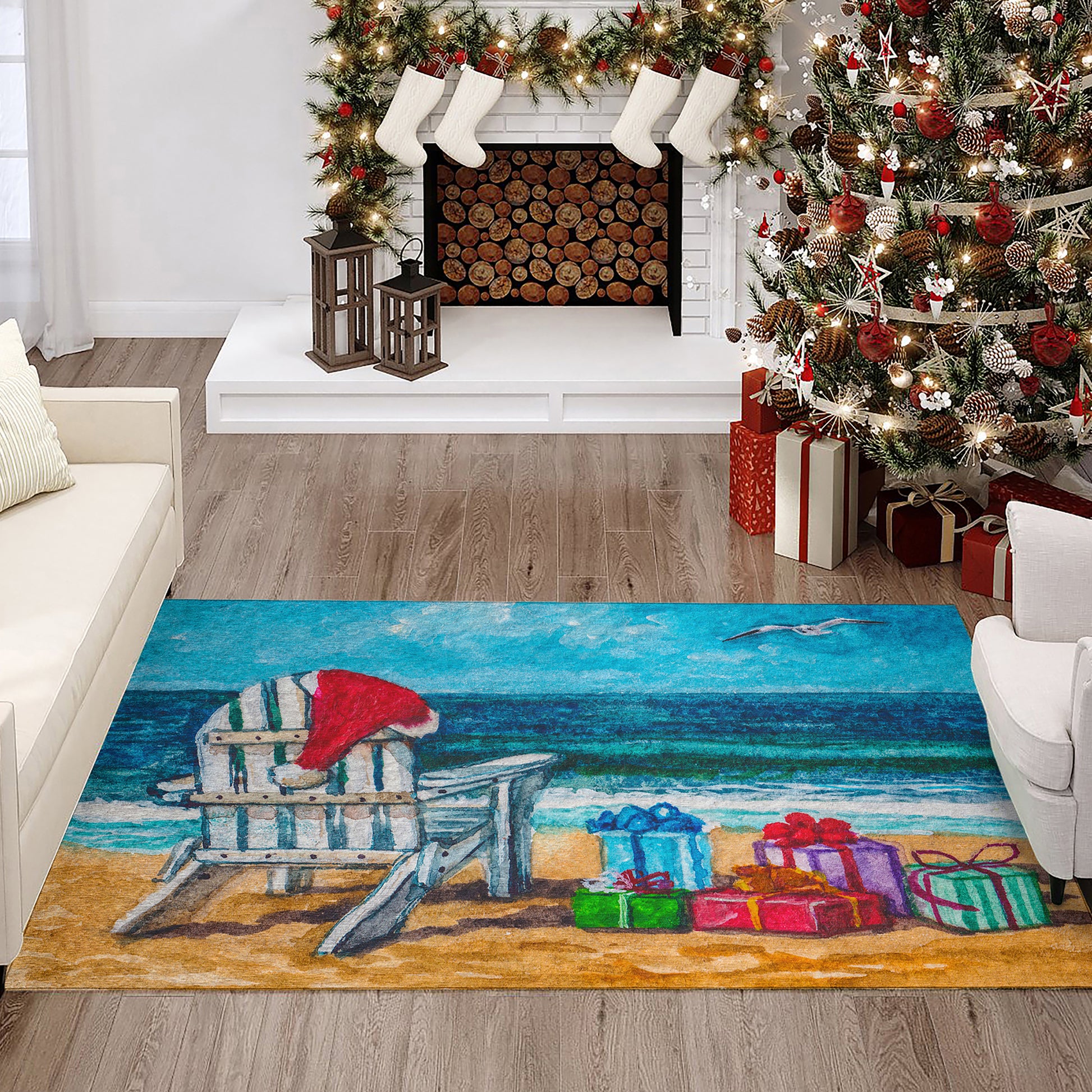 Wonderland collection are classic and whimsical holiday themed rugs. Featuring an ultra-soft and ultra thin pile, each rug is made with 100% polyester pile complete with a non-skid backing. Crafted in the USA using Foreign & Domestic materials and US labor. They are UV Stabilized for indoor and cover outdoor spaces. Shake out or use straight suction with vacuum, do not use a beater bar. Machine washable in cold water and air dry, some sizes may be too large for a residential washing machine and is family and pet friendly.