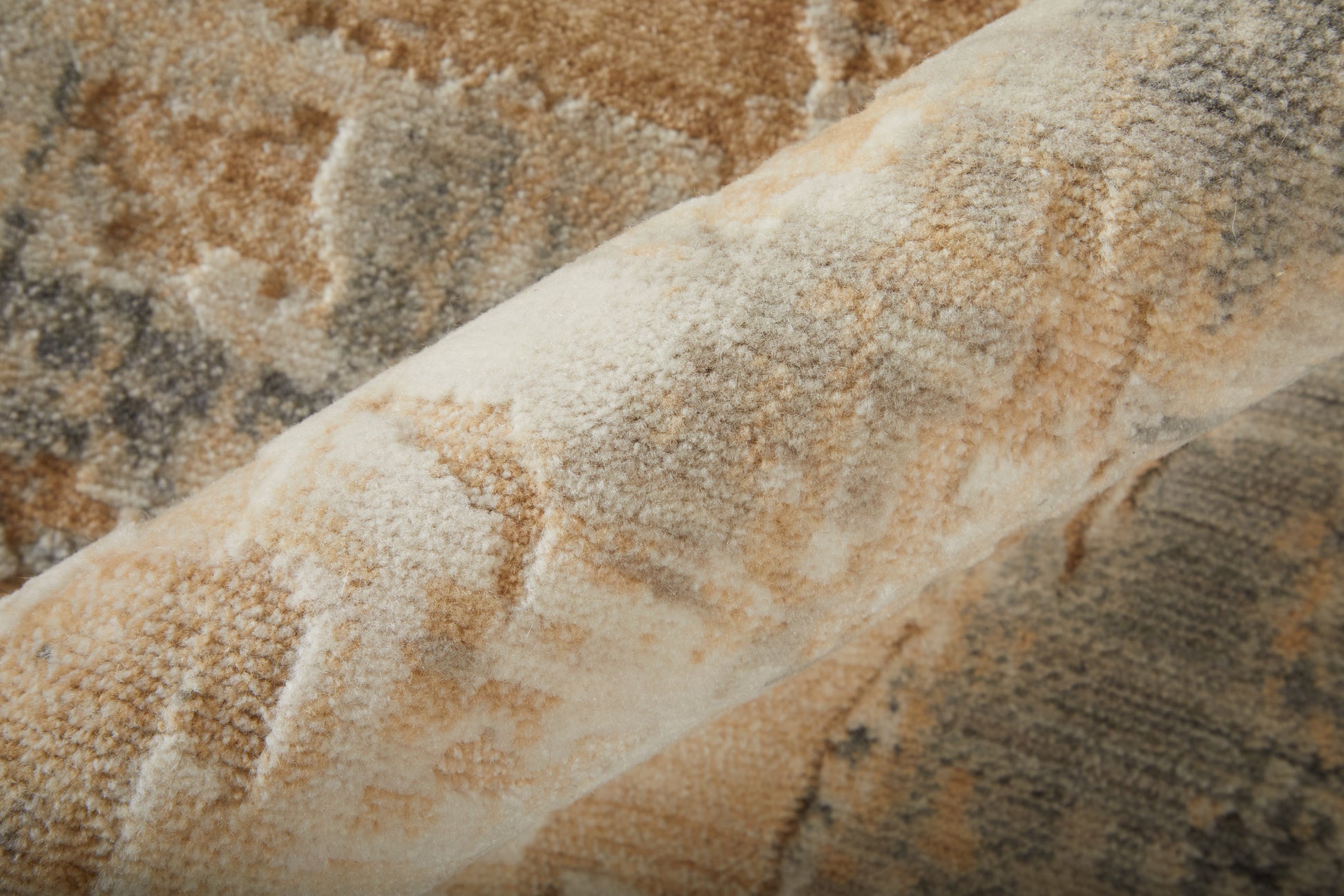 The high/low cut pile creates a pronounced, visually appealing three-dimensional design. This texture adds depth and interest, making the rug a standout piece in any room.