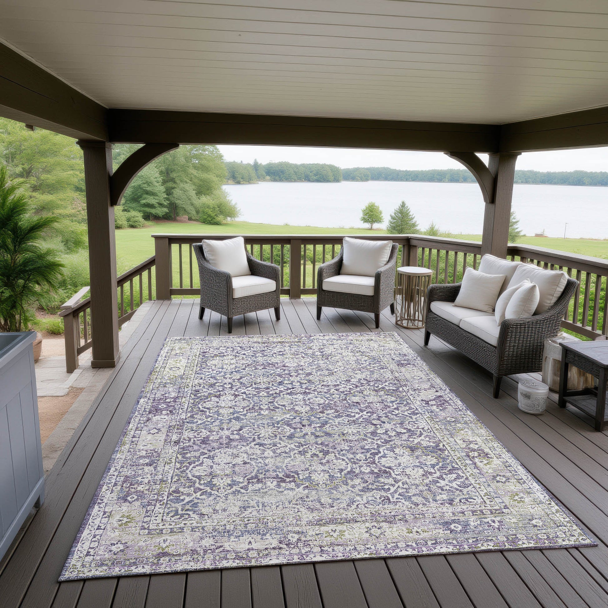 UV stabilized for indoor or outdoor use. All rugs exposed to long periods of intense and direct sunlight can experience loss of color over time. Our rugs perform best in covered outdoor areas and uncovered areas with lower hours of direct sunlight.