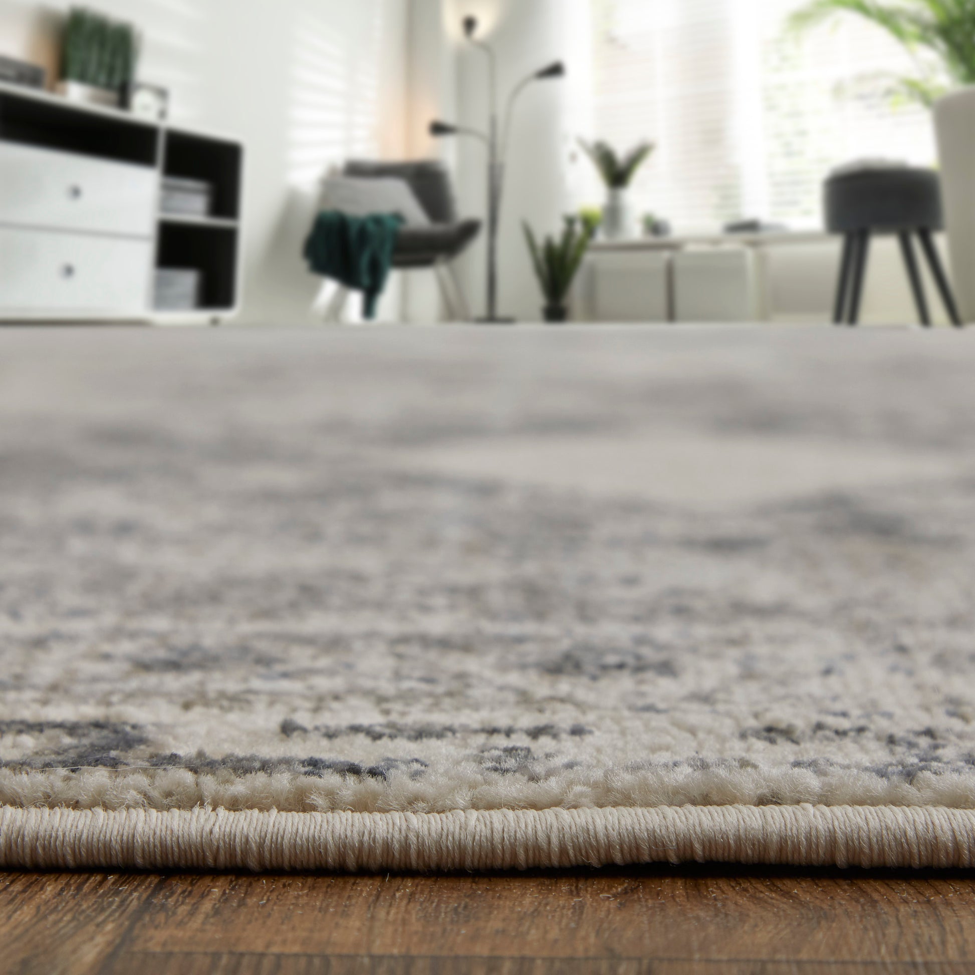 Power loomed in a polypropylene and polyester blend, this collection showcases an on-trend distressed finish. The poly-blend is naturally stain and fade resistant while also being water resistant as well which weathers well if you have pets or host frequently. With classic colors of beige, ivory, and accents of black and grey, this rug is extremely versatile.