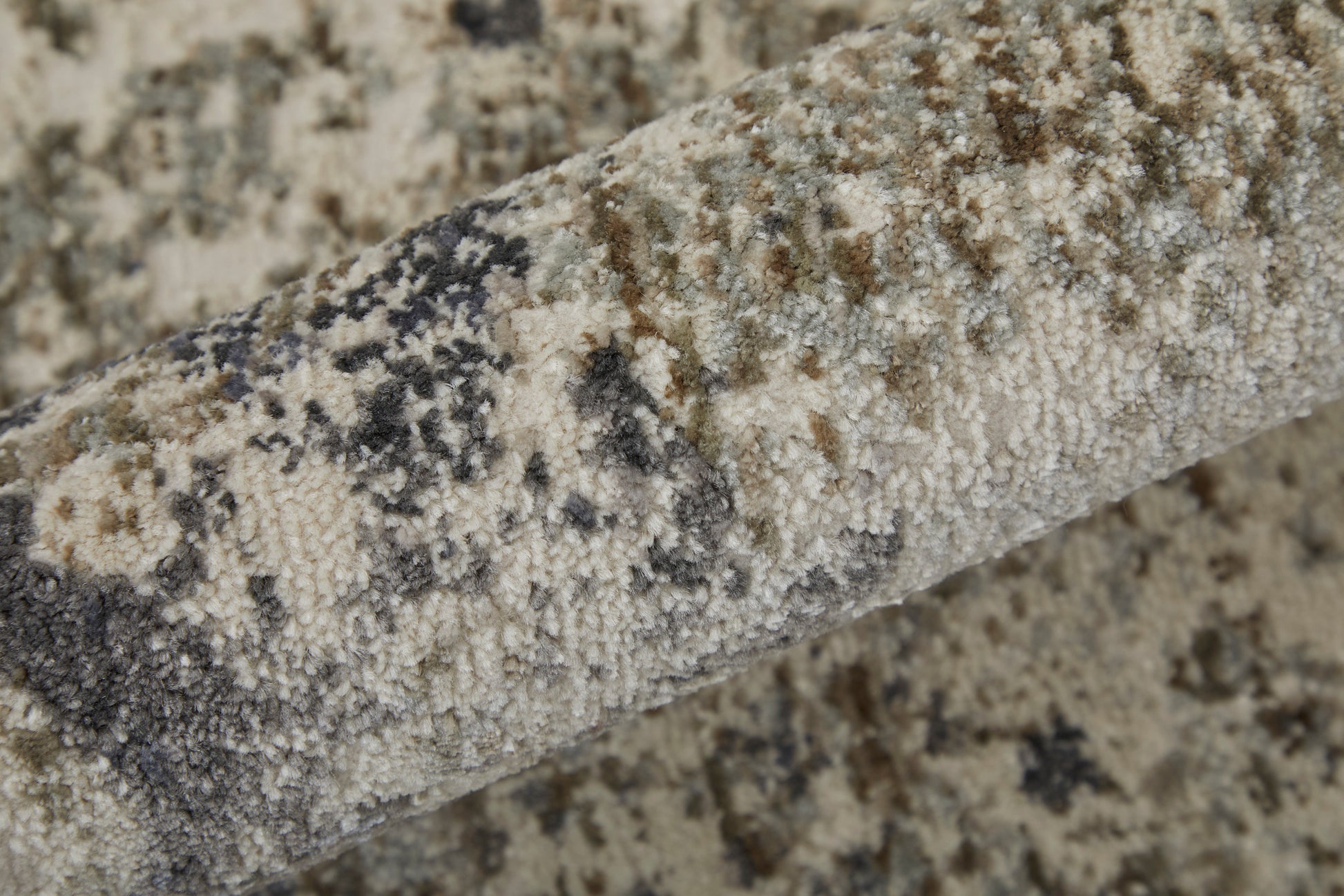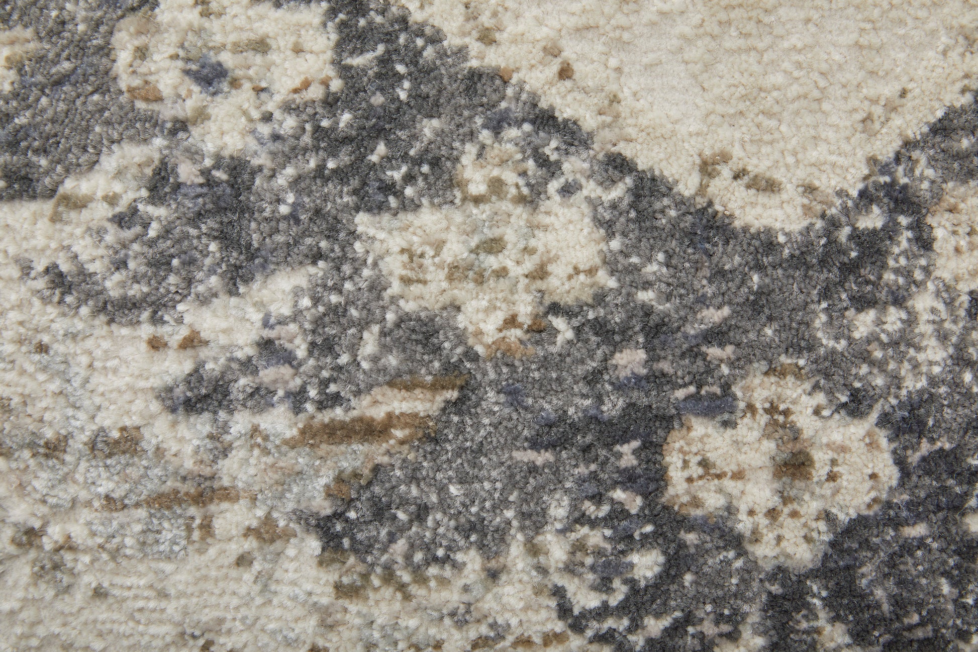 Power loomed in a polypropylene and polyester blend, this collection showcases an on-trend distressed finish. The poly-blend is naturally stain and fade resistant while also being water resistant as well which weathers well if you have pets or host frequently. With classic colors of beige, ivory, and accents of black and grey, this rug is extremely versatile.