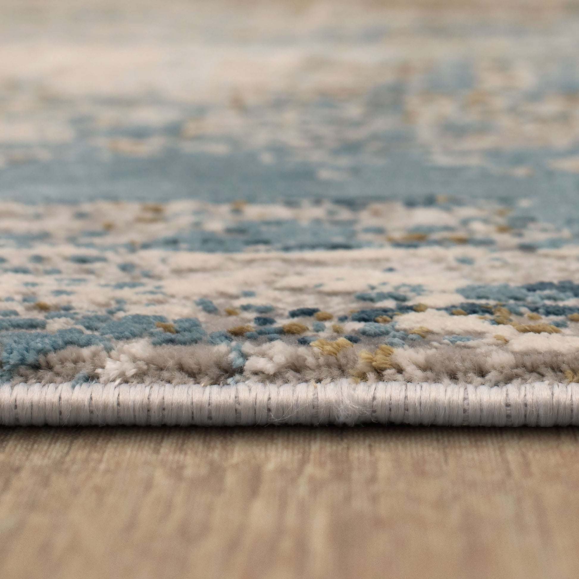 Stormy clouds of watery blue, dove grey, tobacco brown and neutral beige color collide in the explosive style of Karastan Rugs' Marseille Area Rug in Blue. Distressed details and eroded color techniques reveal thoughtful detail and the artistic influences of this abstract style. A modern marriage of textures, the subtle shimmer of viscose is woven alongside soft and stain resistant premium polyester in the debuts of Karastan Rugs' new Tryst Collection.