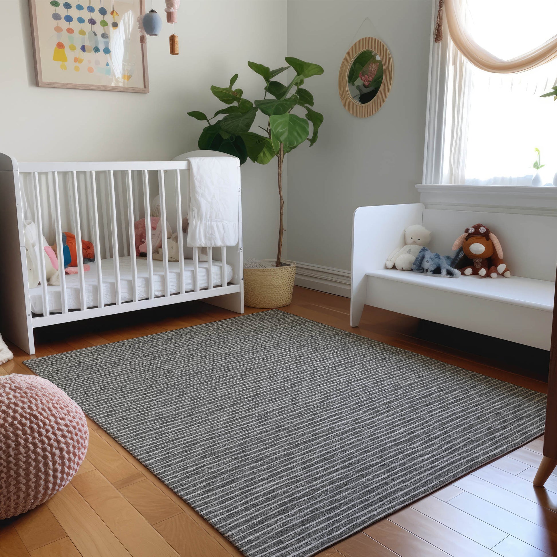 Discover the perfect combination of style and practicality with this easy, casual, wavy striped rug. Crafted with durability in mind, these rugs are UV stabilized for indoor outdoor use, ensuring they maintain their vibrant colors even in sunlit areas. The ultra-thin, flat-woven chenille profile not only adds a touch of elegance but also allows for quicker air-drying after washing, making them convenient for busy households. Plus, with the incorporated non-skid backing, they provide a secure and stable surface, perfect for families and pets. Machine-Washable For Sizes Under 5’ X 7’6”. For Sizes Larger Than 5’ X 7’6”, It Is Highly Suggested Using A Commercial Sized Washing Machine. Large Sizes Are Not Suggested For Smaller Home Washing Machines.