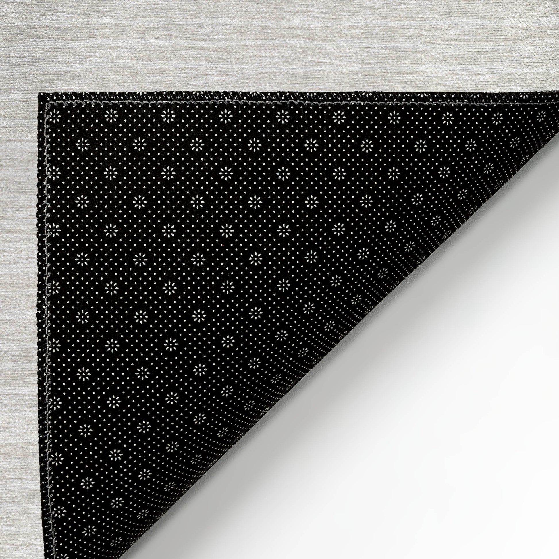 Ultra thin polyester flat woven construction with an incorporated non-skid backing. A separate rug pad may be used for added cushion and support.